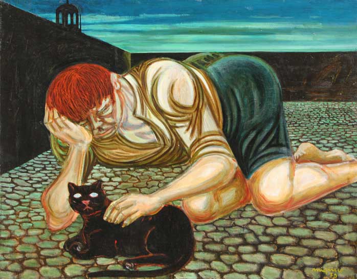 MIGNECO Giuseppe (Messina 09/02/1908 - Milano 28/02/1997) Ragazzo col gatto,...