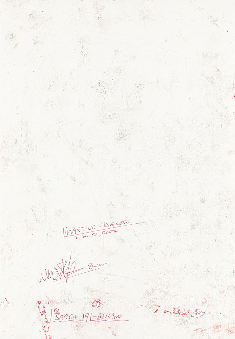 Firma, titolo, datazione, tecnica, misure e località (Milano) al retro