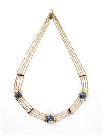 Collana oro, zaffiri, rubini e diamanti