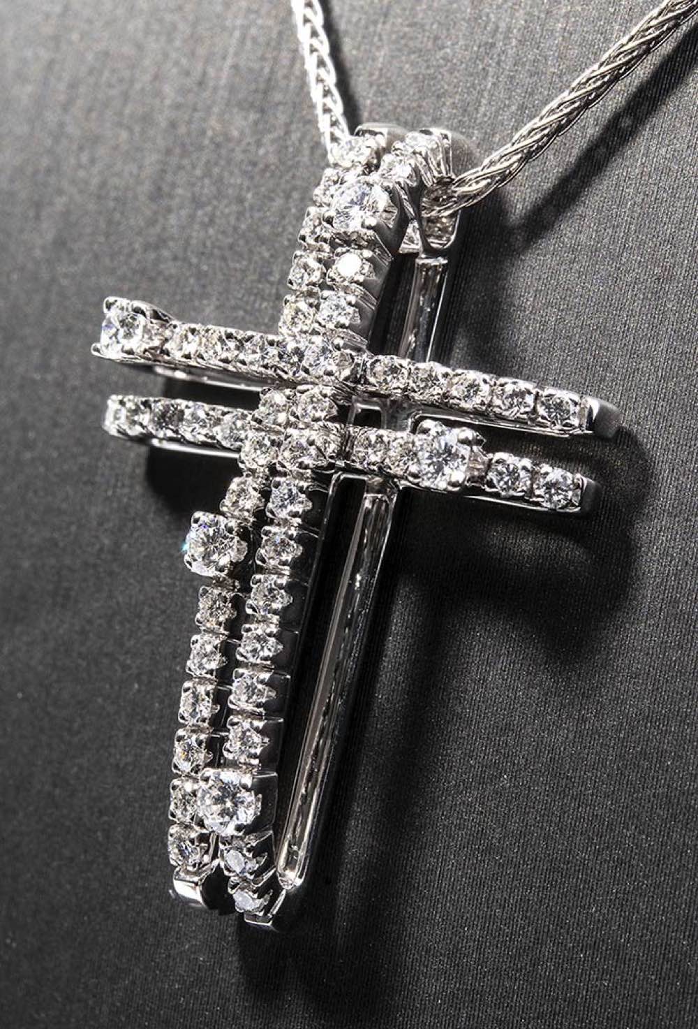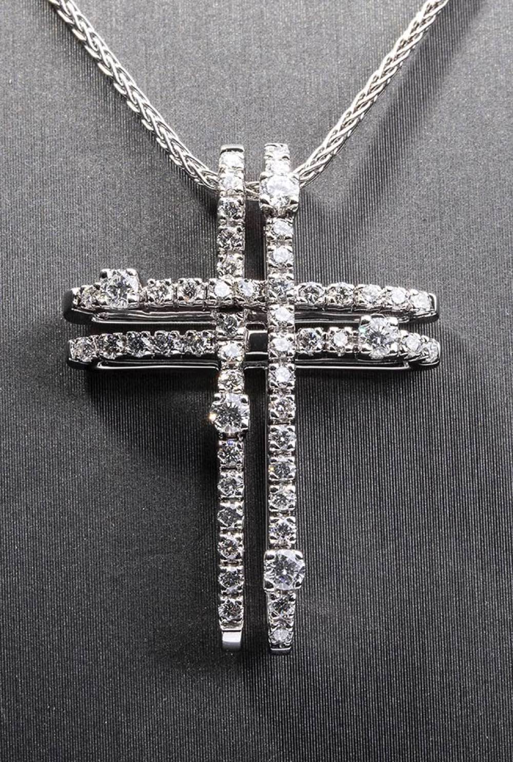 oro bianco 18k, collezione "Notte di San Lorenzo", con diamanti taglio brilliante. Punzonato "Salvini", "Handmade Italy", "750", "3161 AL". Lunghezza 45 cm. Dimensioni pendente 31 x 22 mm. Peso 10,7 gr. Stato di conservazione: ***** eccellente.
