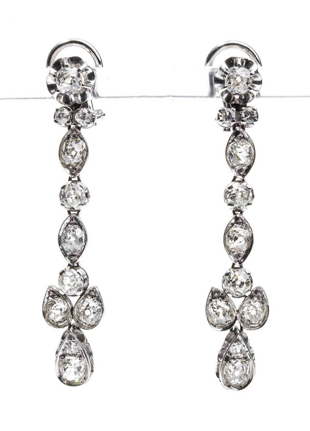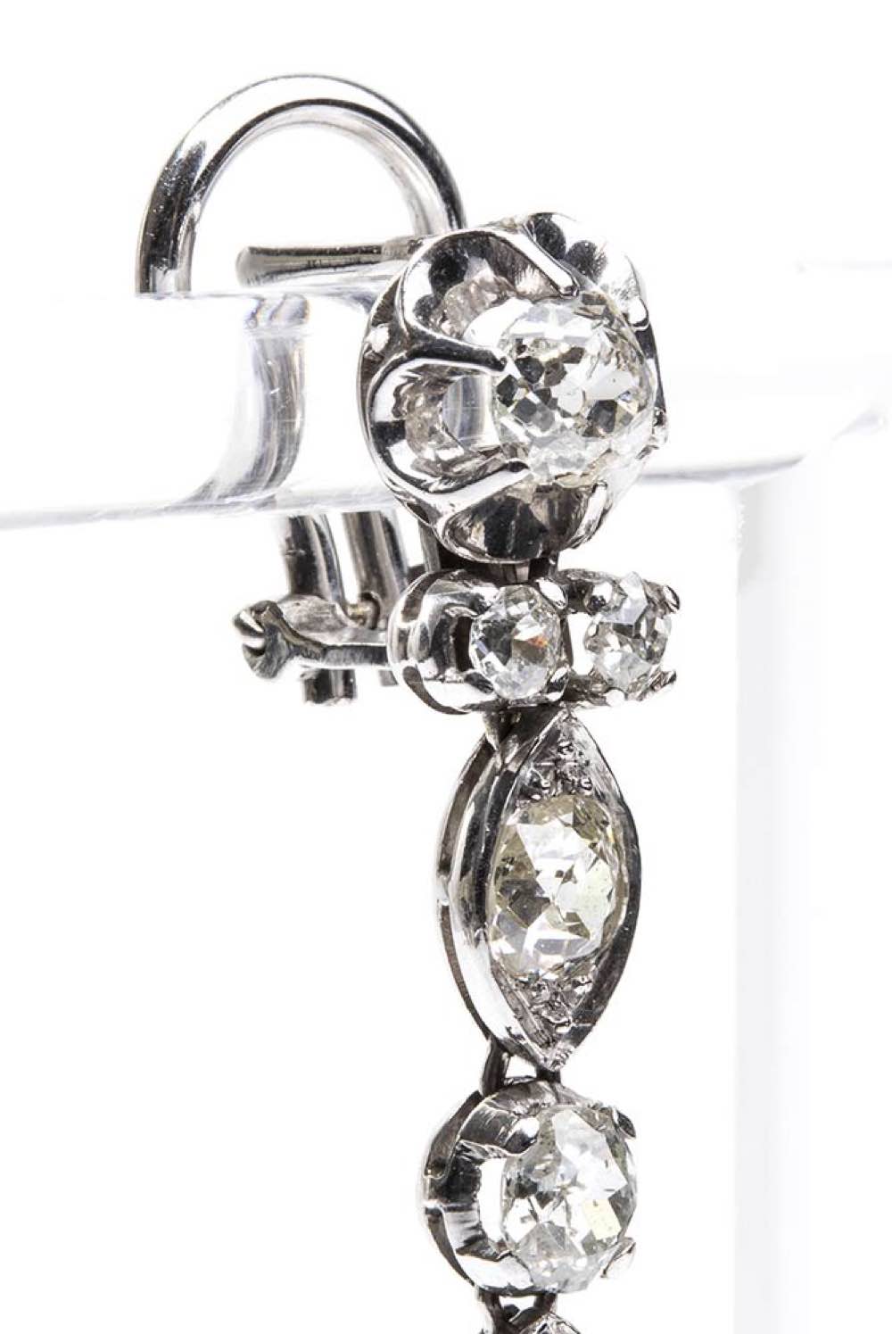oro bianco 18k, incastonato con diamanti taglio vecchio europeo 4,75 ct circa, H-I, VS. Dimensioni 50 x 10 mm. Peso 9,3 gr. Stato di conservazione: ***** eccellente.