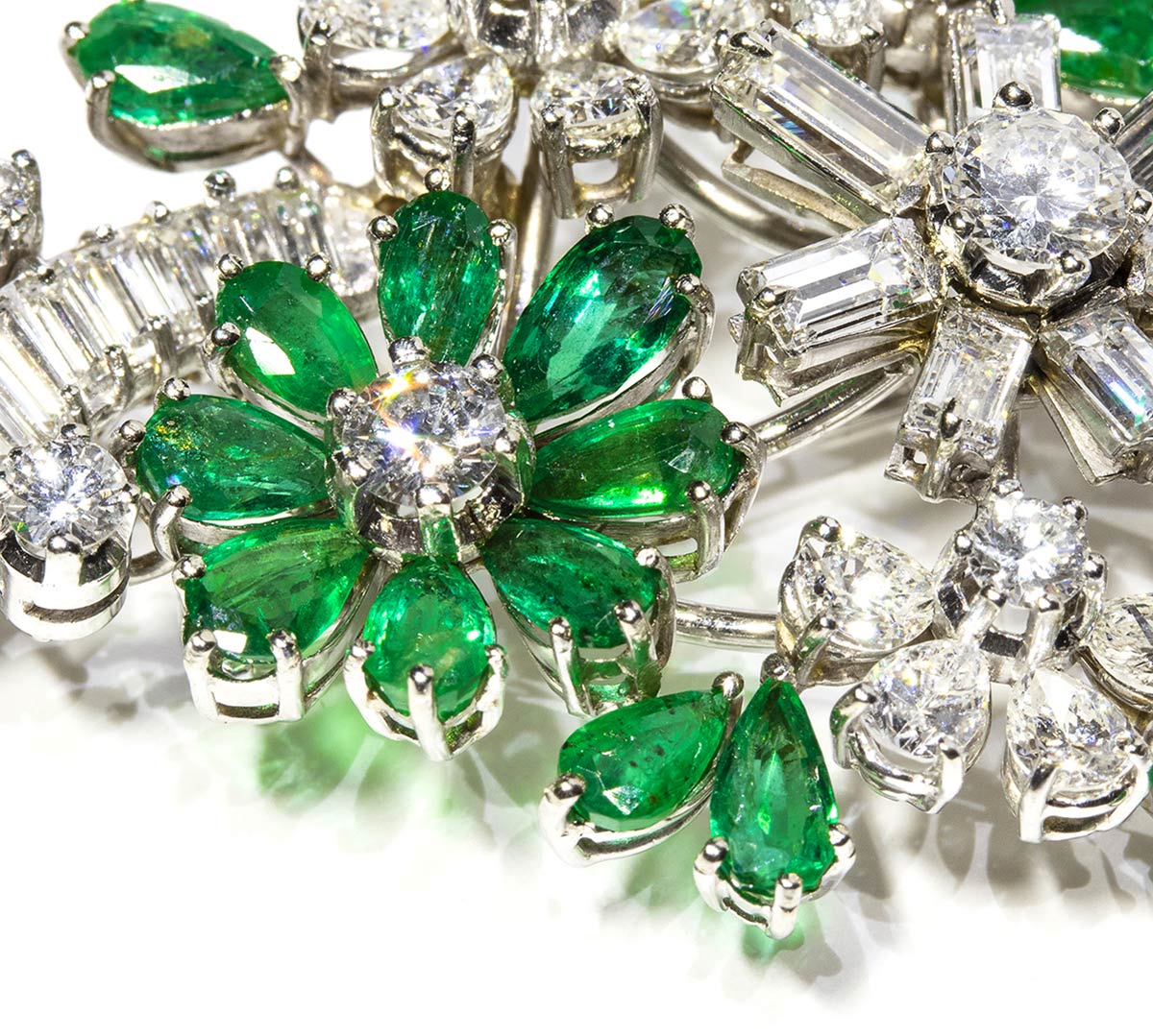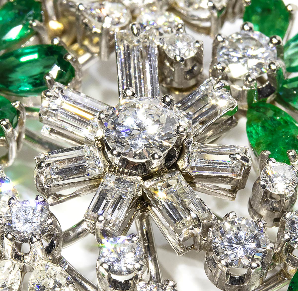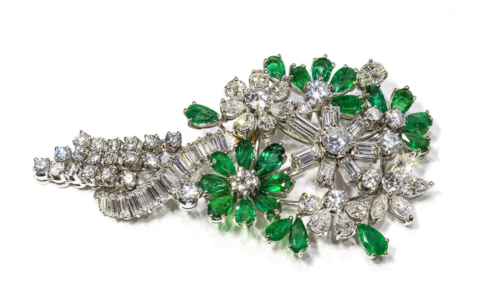 Spilla in oro, diamanti e smeraldi