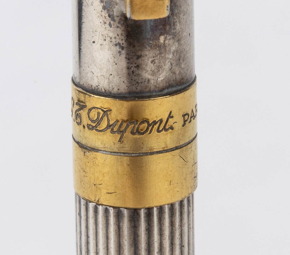 corpo argentato con clip dorata, riportante la dicitura "Dupont Paris". Seriale 51DNK45. Lunghezza 13,4 cm. Peso 26,8 gr. Stato di conservazione: **** buono. La penna potrebbe necessitare del cambio del refill.