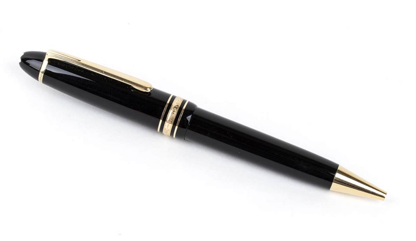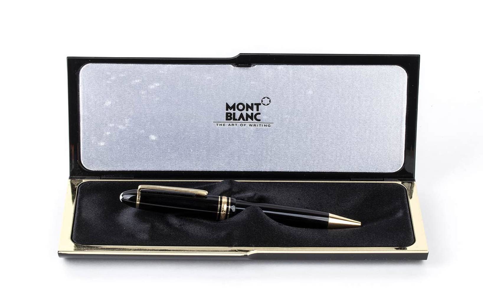fusto e cappuccio in resina nera con finiture placcate in oro. Seriale XG1229621. Lunghezza 14,5 cm. Stato di conservazione: ***** eccellente. Scatola originale Montblanc. La penna potrebbe necessitare del cambio del refill.