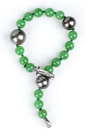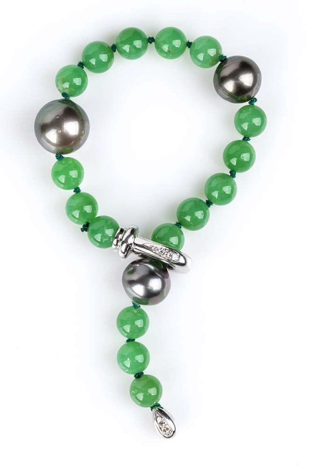 Bracciale ad un filo di perle Tahiti, crisoprasio e diamanti