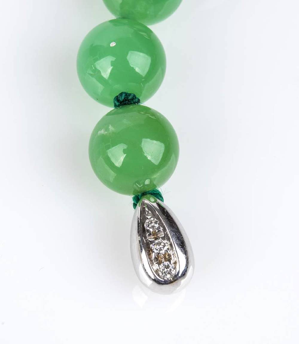 oro bianco 18k, dettagli in diamanti taglio brillante 0,06 ct circa, G, VVS. Punzonato "750" e "1557 AL". Lunghezza 21 cm, diametro perle 11,5-12,5 mm. Peso 26,5 gr. Stato di conservazione: ***** eccellente.