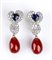 Orecchini pendenti in oro con corallo Aka, zaffiri e diamanti