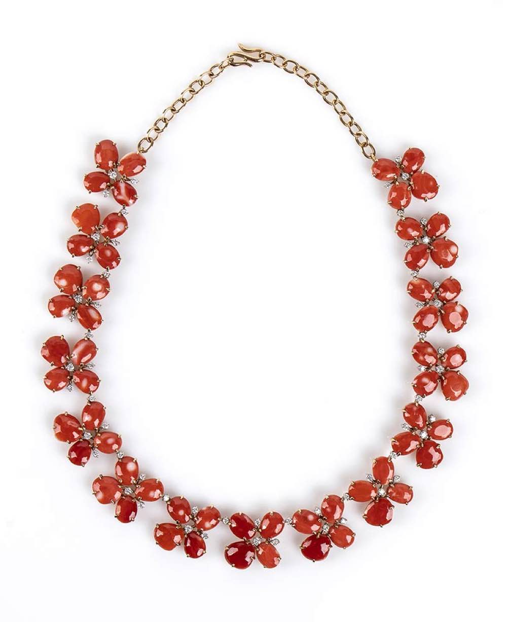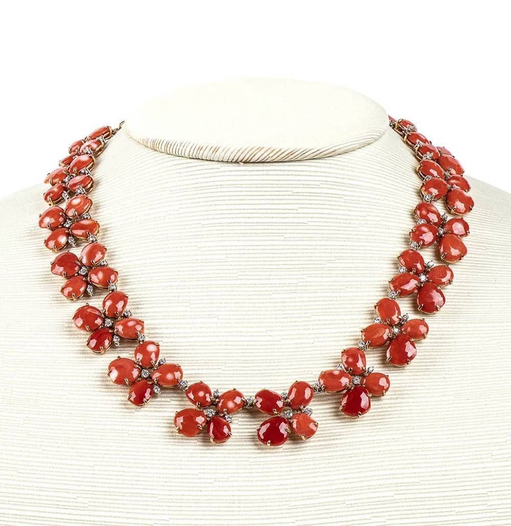 Girocollo in oro, corallo Cerasuolo e diamanti