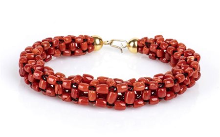 Bracciale a maglia tessita in corallo Mediterraneo