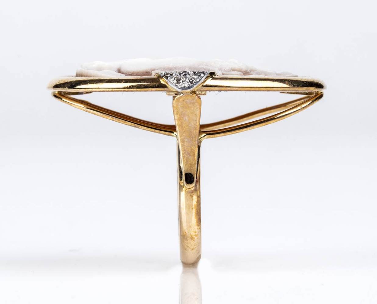 Anello in oro con cammeo in conchiglia e diamanti - manifattura ROVIAN