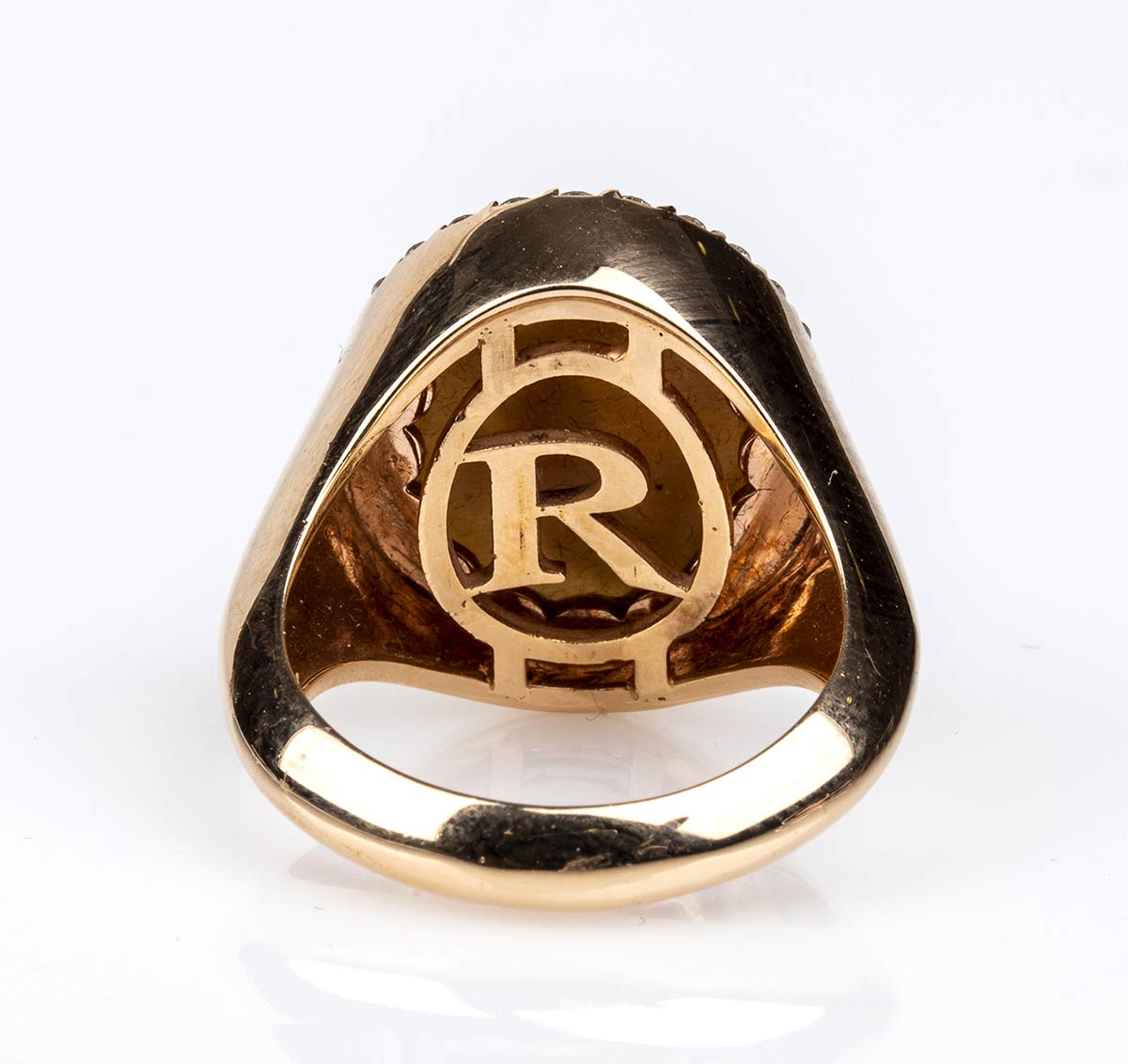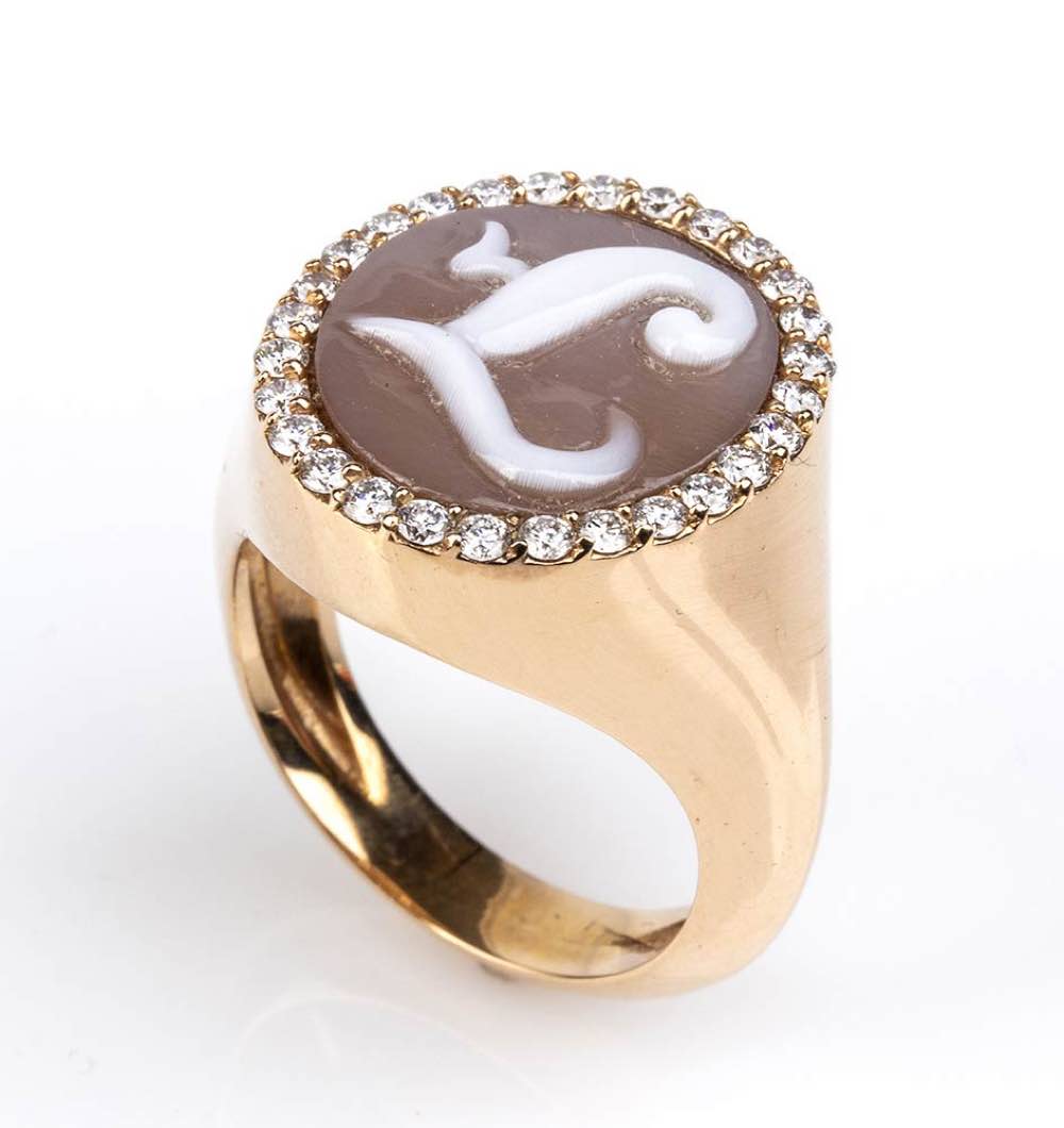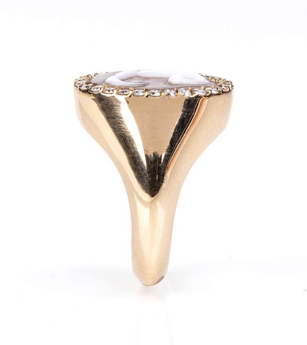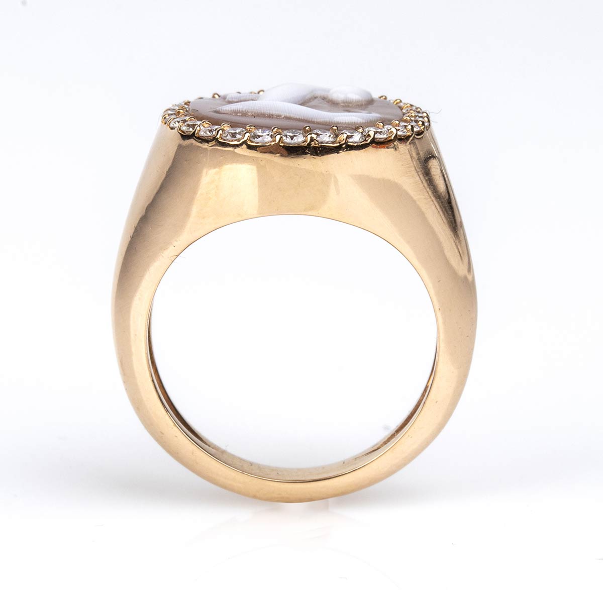 Anello in oro con cammeo in conchiglia sardonica e diamanti
