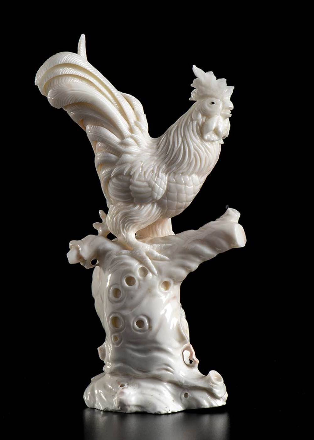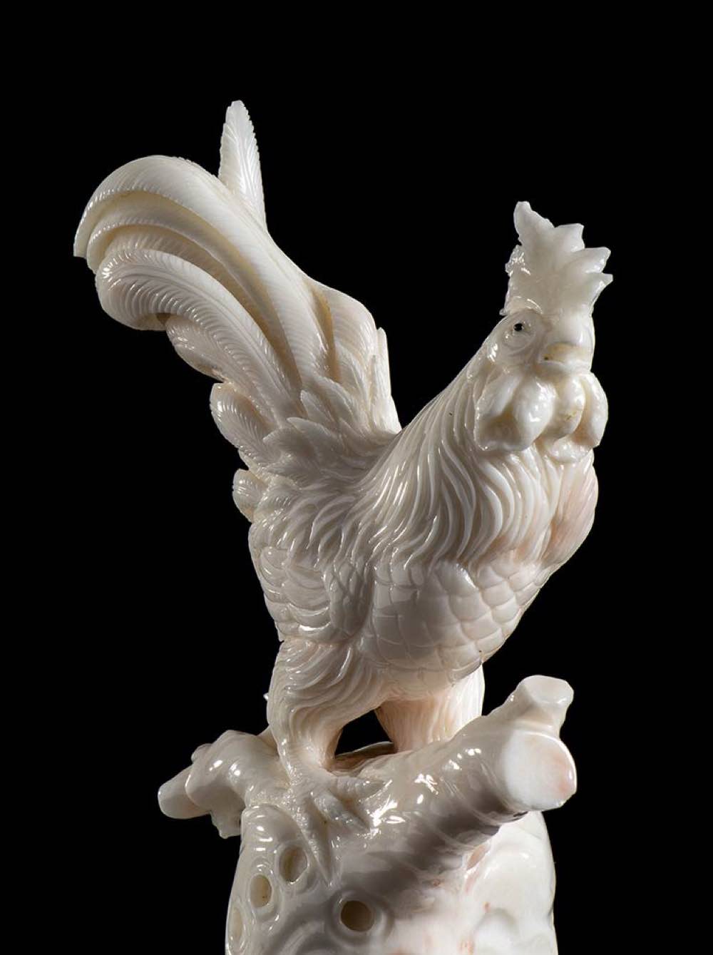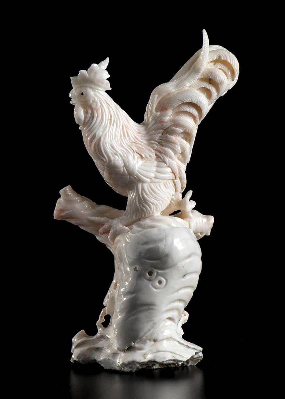 (corallium konjoi) raffigurante un gallo. Peso 283 gr. Dimensioni 14 x 7,1 x 3,6 cm. Stato di conservazione: ***** eccellente.