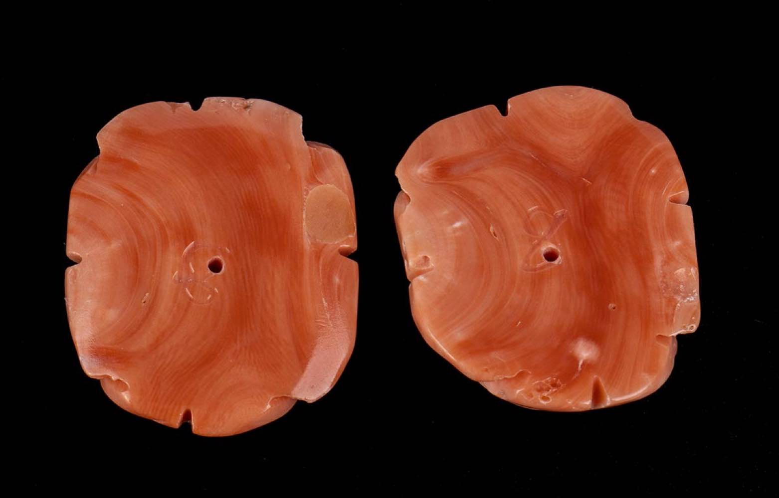 (corallium elatius) raffiguranti rose. Diametro 24 mm. Peso 16 gr. Stato di conservazione: ***** eccellente.