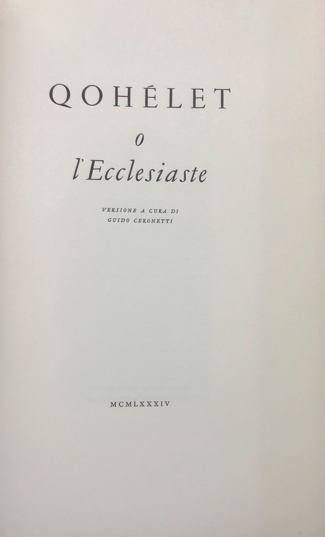 EDIZIONI D'ARTE - Qohélet o l'Ecclesiaste, 1984