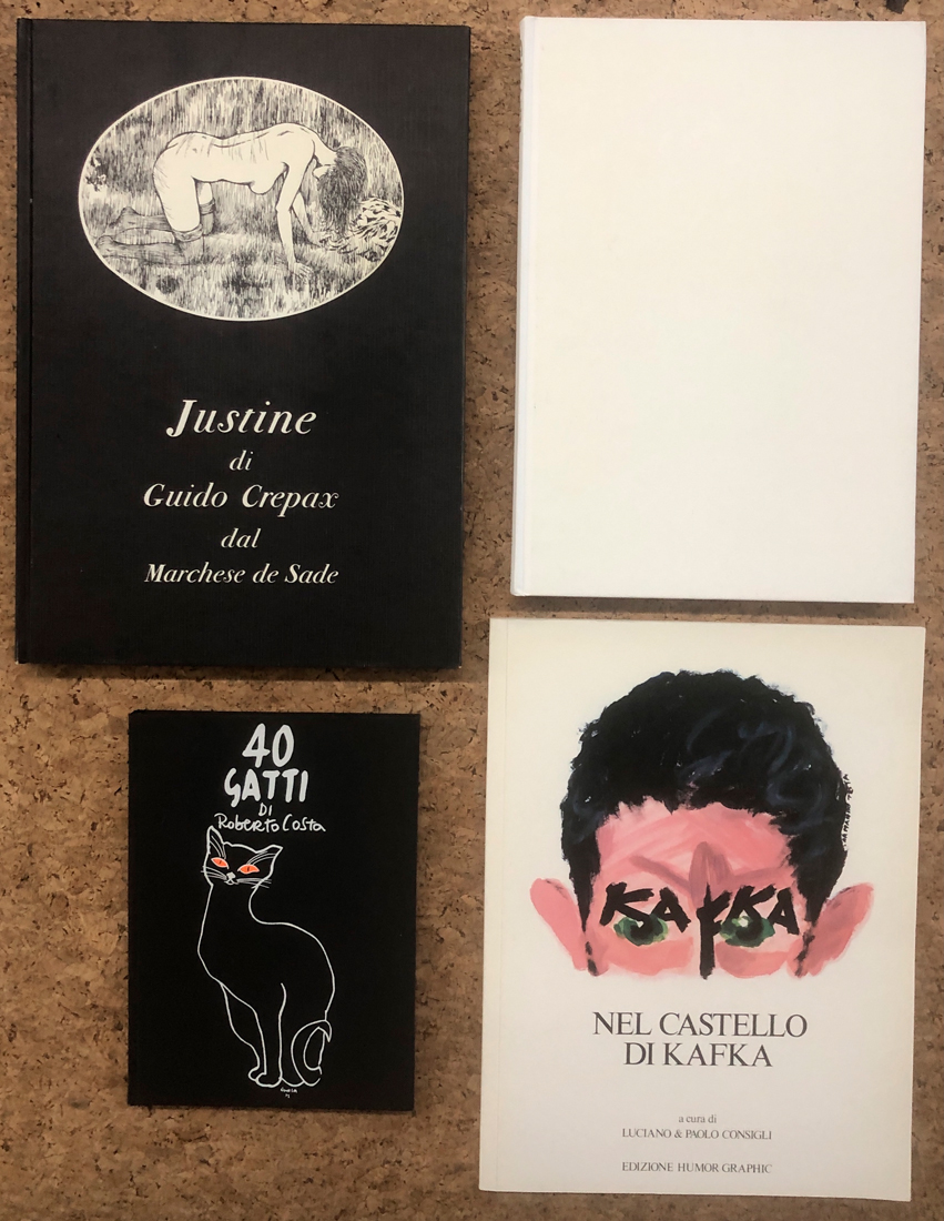 catalogo riccamente illustrato a cura di Luciano e Paolo Consigli (interpretazioni grafiche di cinquantuno disegnatori del gruppo Humor Graphic sul ritratto e sulle opere di Kafka in occasione del primo centenario della nascita)