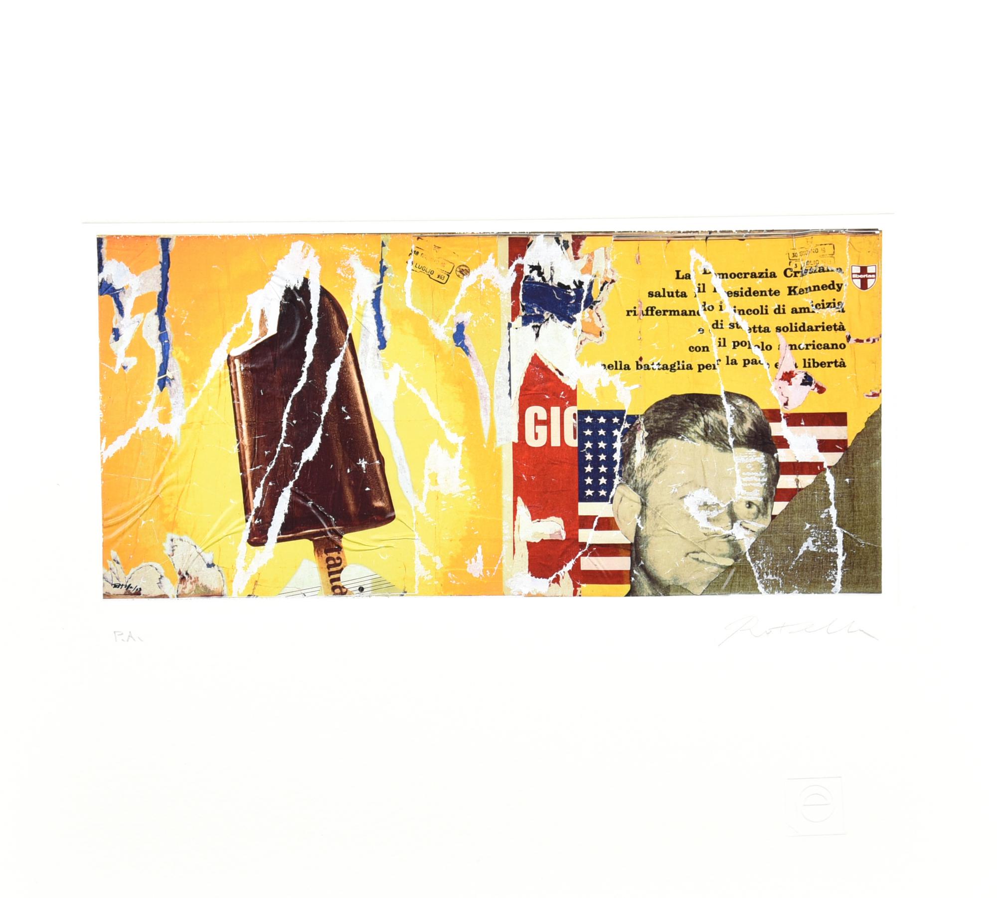 Mimmo Rotella (1918 - 2006) KENNEDY collage, cm 35x37; es. p.a. firma,...
