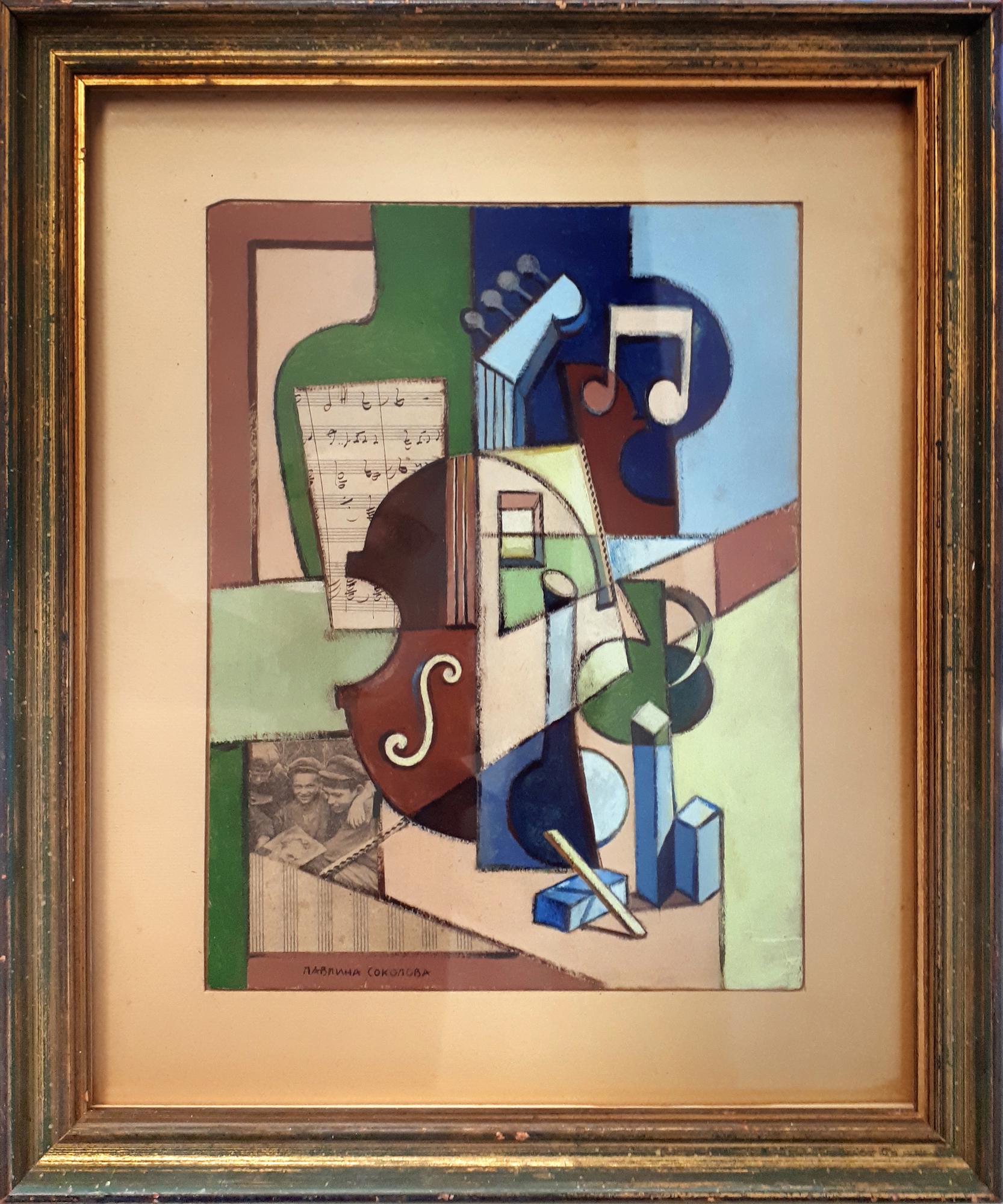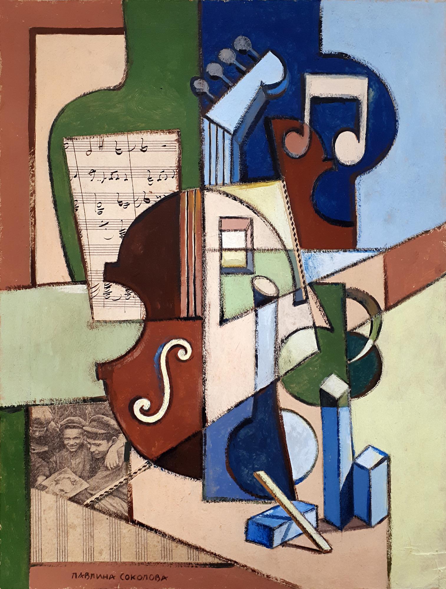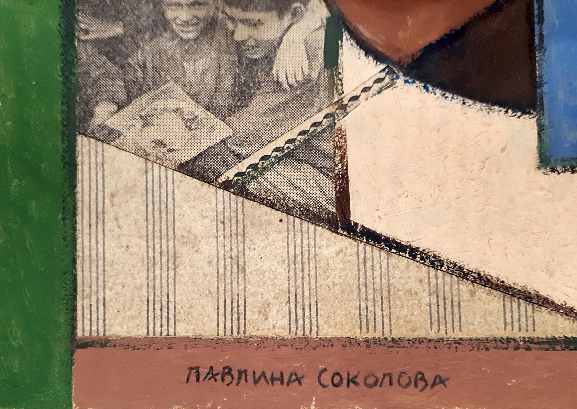 Pavlina Sokolova COMPOSIZIONE CUBO FUTURISTA olio e collage su cartone, cm...