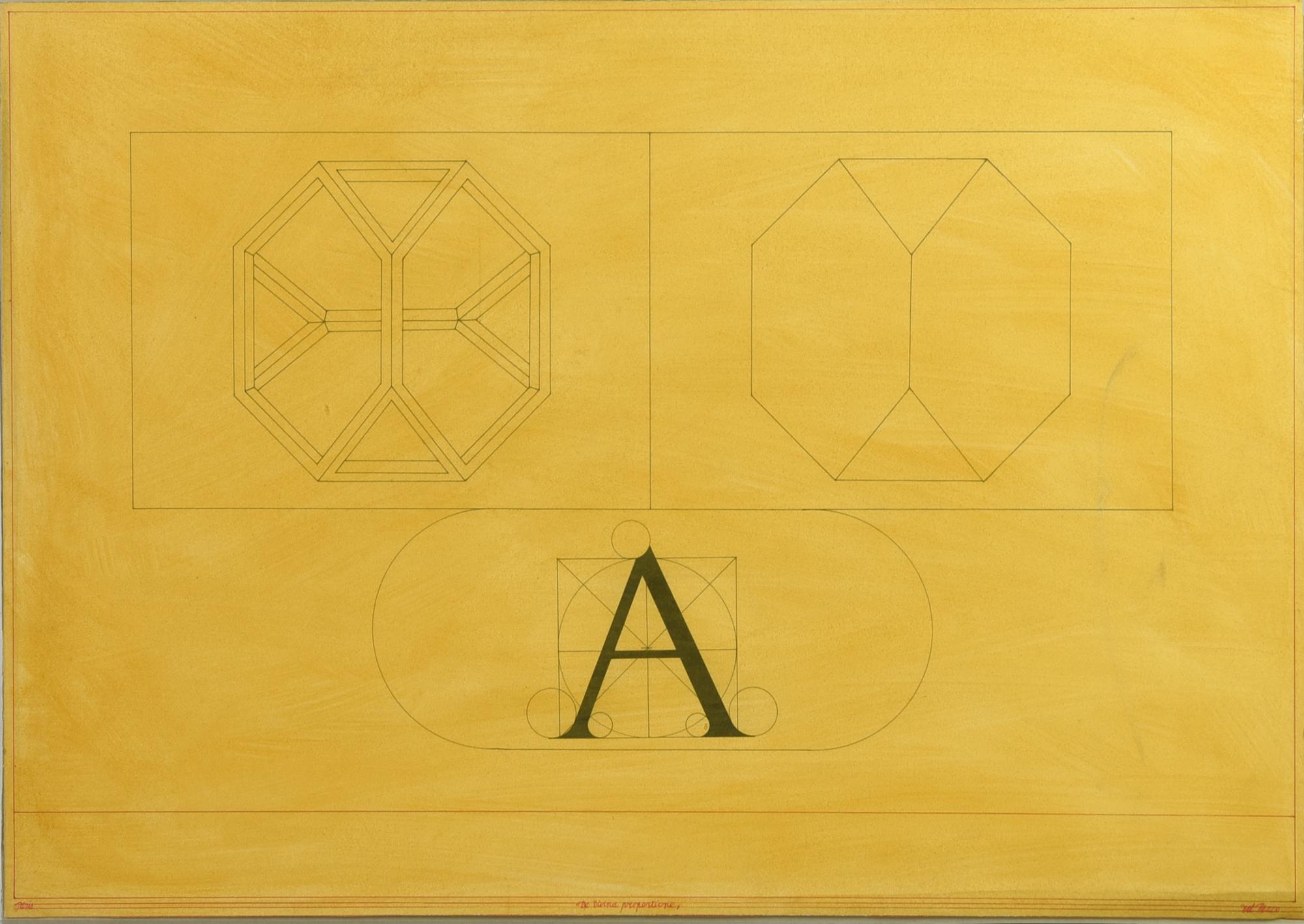 Lucio Del Pezzo (1933) DE DIVINA PROPORTIONE china e gouache su cartone, cm...