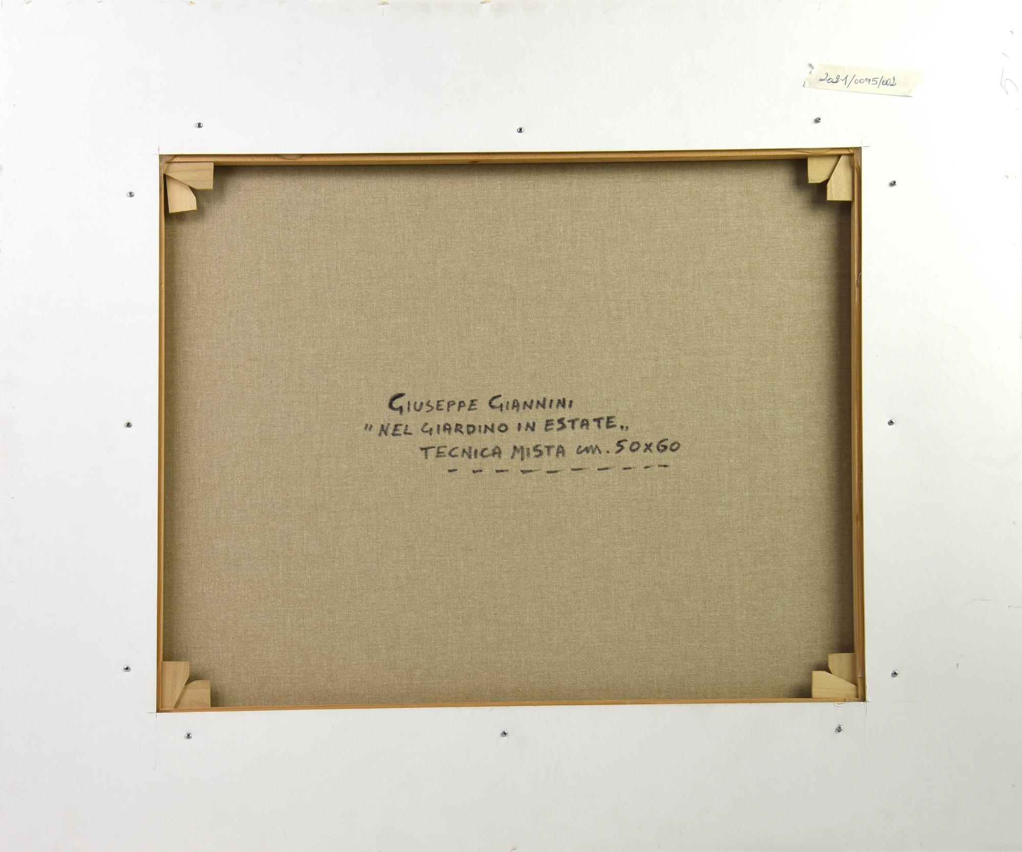 Giuseppe Giannini (1937) NEL GIARDINO IN ESTATE olio su carta applicata su...