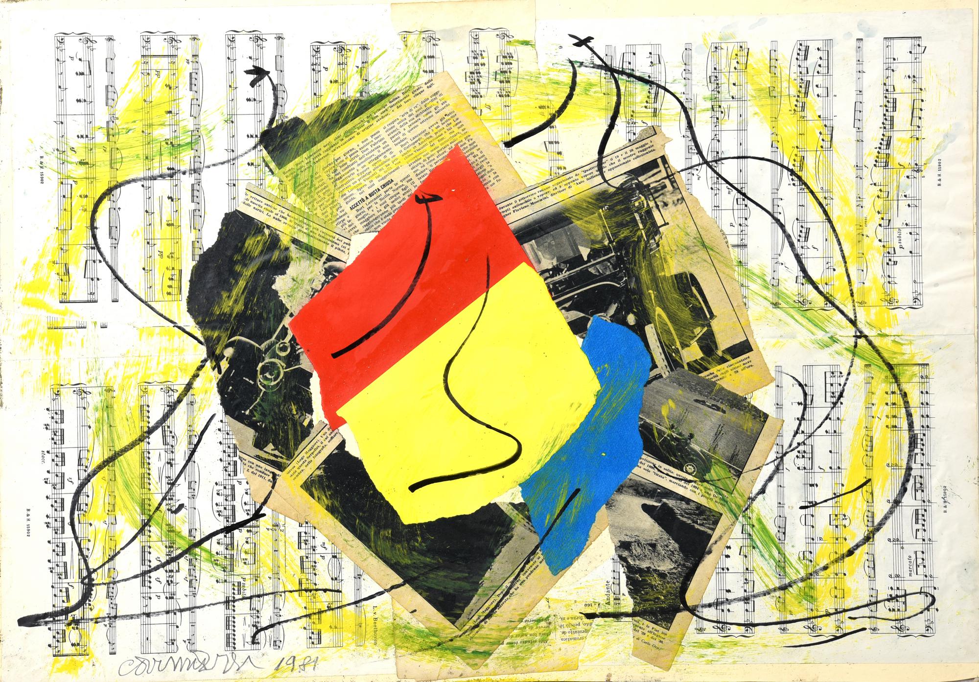 Arturo Carmassi (1925 - 2015) SPARTITO collage, tempera e pastelli su...