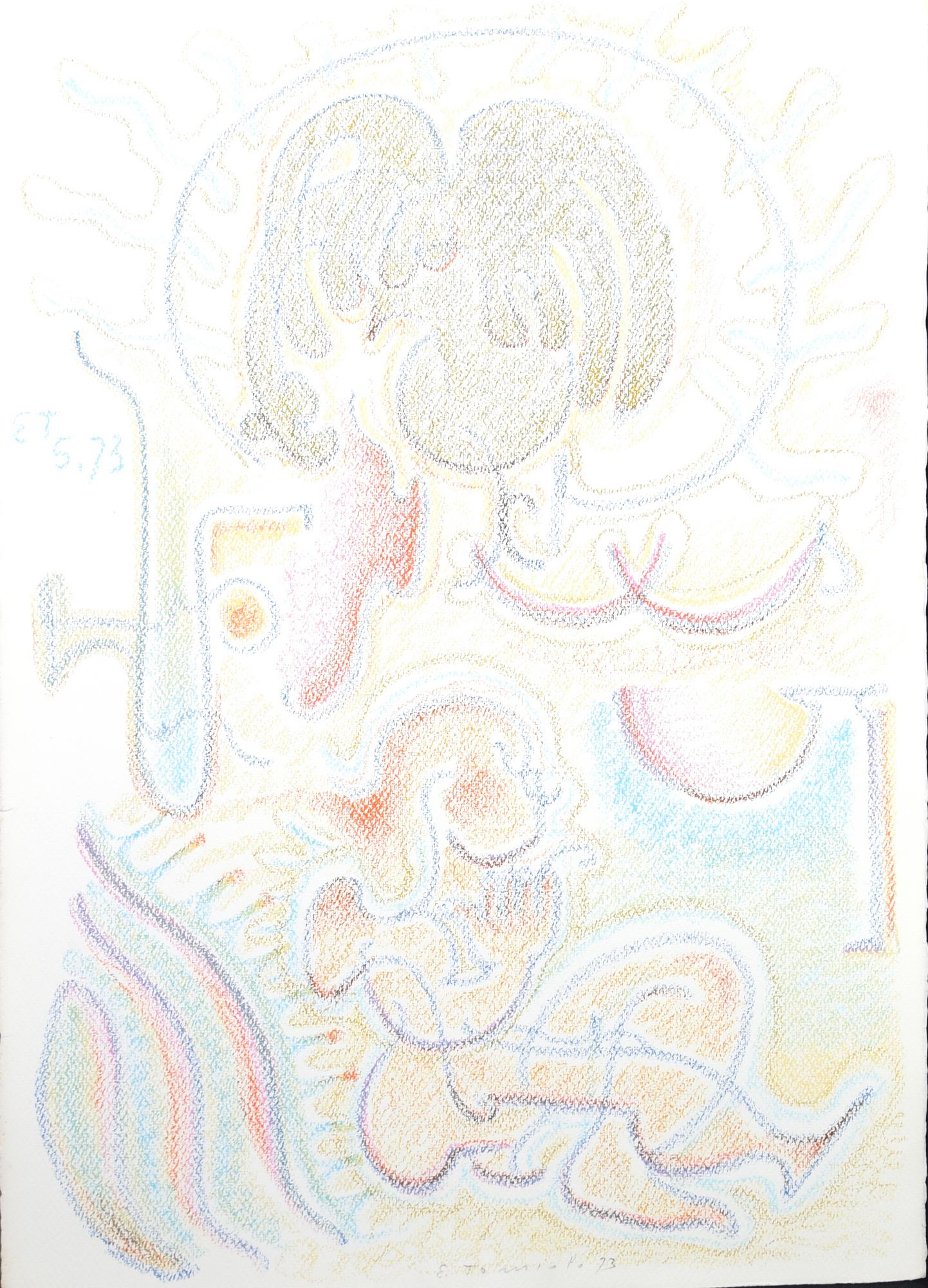 Eugenio Tomiolo (1911) COMPOSIZIONE pastelli su carta, cm 70x50 firma e data...