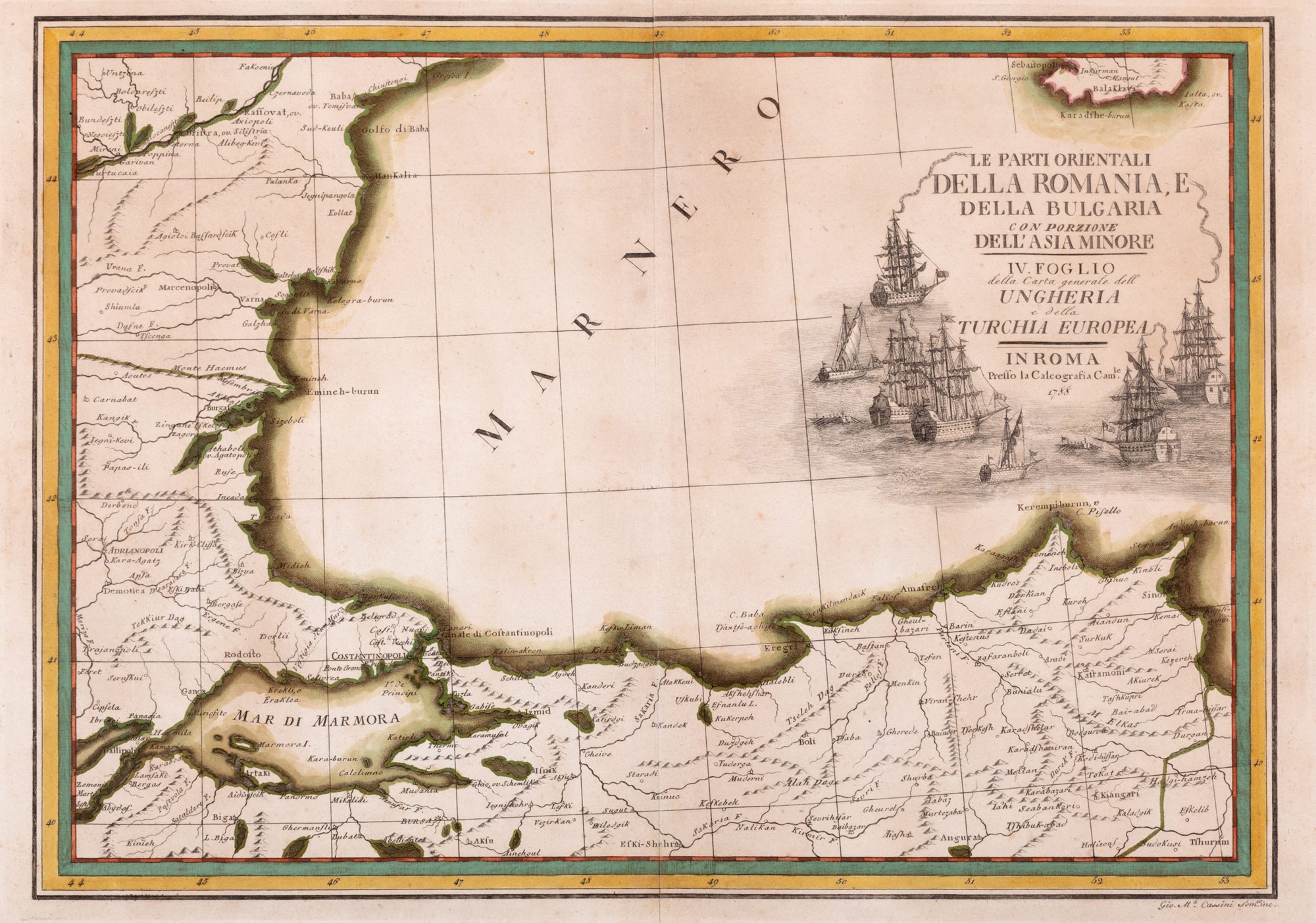 Cartografia - Cassini, Giovanni Maria - Le parti orientali della Bulgaria con porzione dell'Asia minore, IV foglio della carta generale dell'Ungheria e della Turchia moderna