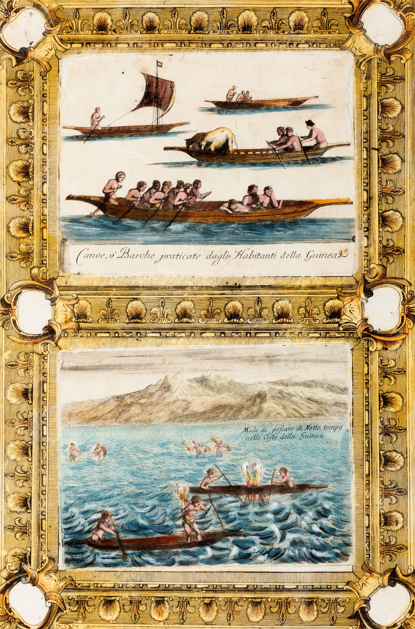 Lot 263 | Cartografia - Coronelli, Vincenzo Maria - Canoe o Barche praticate dagli Habitanti della Guinea - Modo di pescare notte tempo nelle coste della Guinea