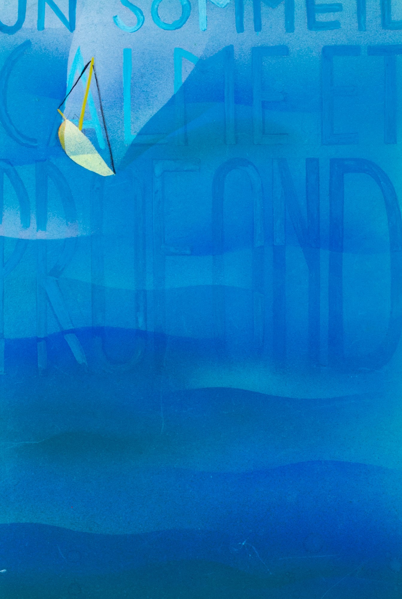 Bozzetto pubblicitario creato per una campagna promozionale per la stagione estiva («Campaigne bains de Mer») per i magazzini Palais de la Nouveautè. [Bibliografia: cfr. Arturo Carlo Quintavalle, «Sepo», Milano, Feltrinelli, 1980: pag. 88].