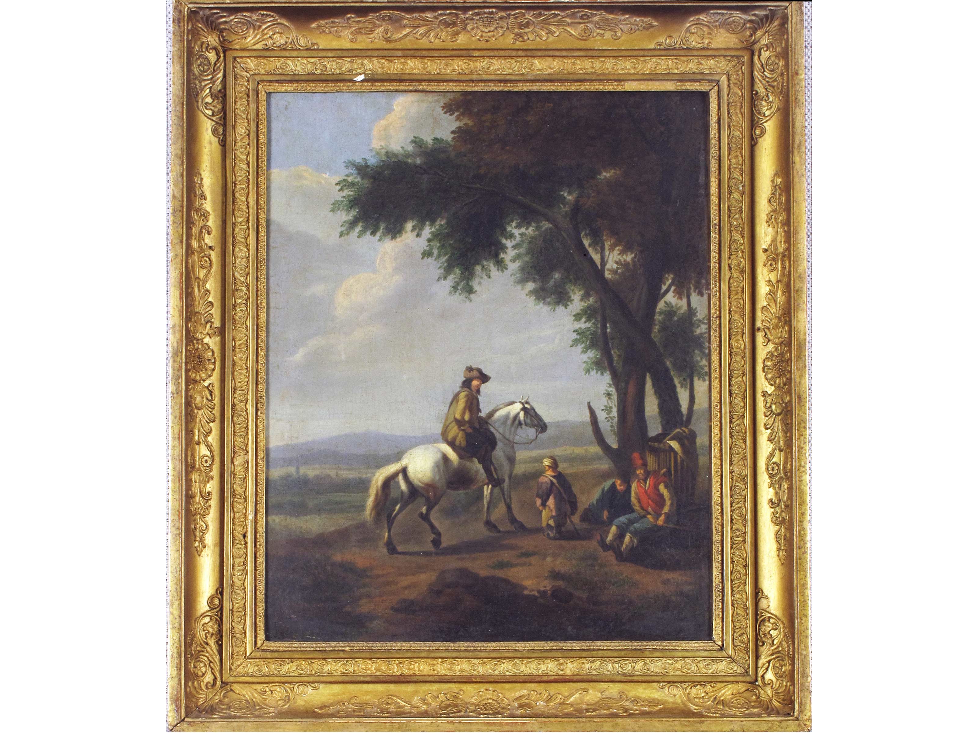 Scuola francese (XVIII secolo) Scena campestre Olio su tavola Misure 41,5x34 cm