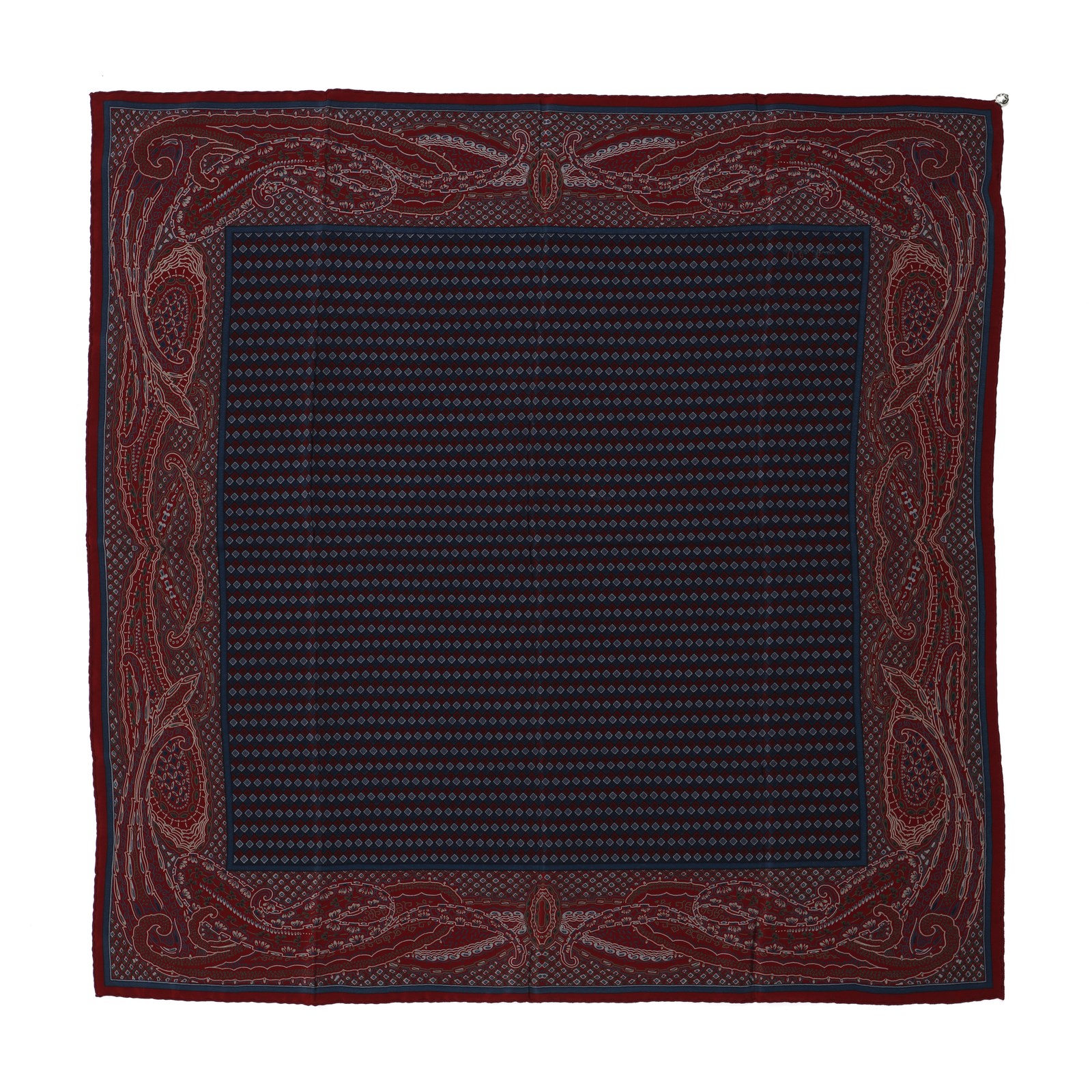 VALENTINO Foulard in seta con stampa geometrica (blu e bordeaux). Seta. Cm 82,00 x 82,00.
