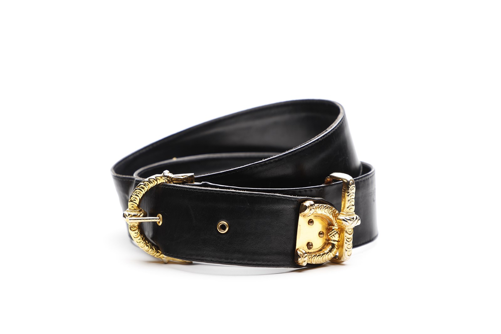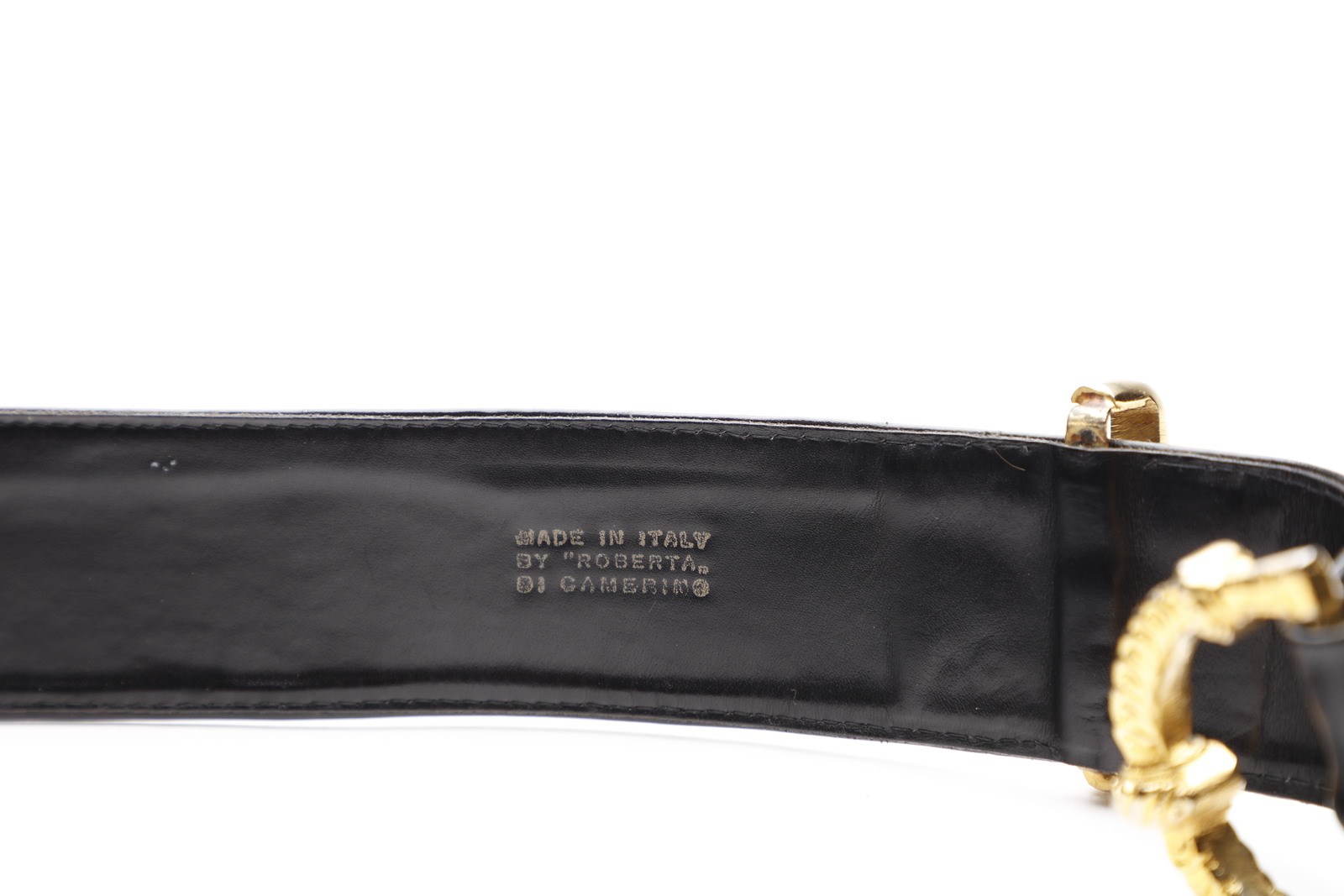 Lot 22 | DI CAMERINO ROBERTA (1920 - 2010) - Cintura in pelle nera con fibbia e finiture metalliche color oro.