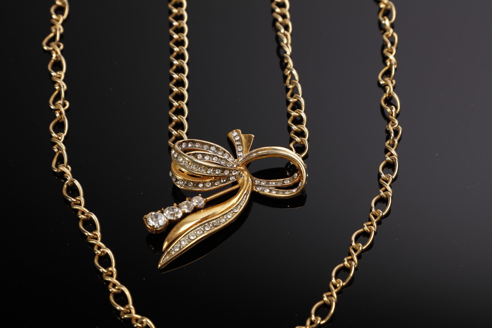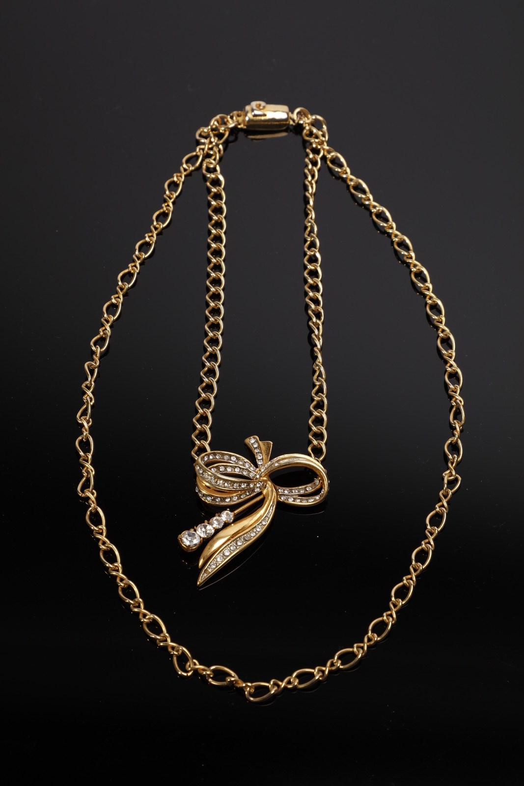 CARDIN PIERRE Girocollo a duplice filo, catena dorata e fiocco in strass. Metallo dorato.. .