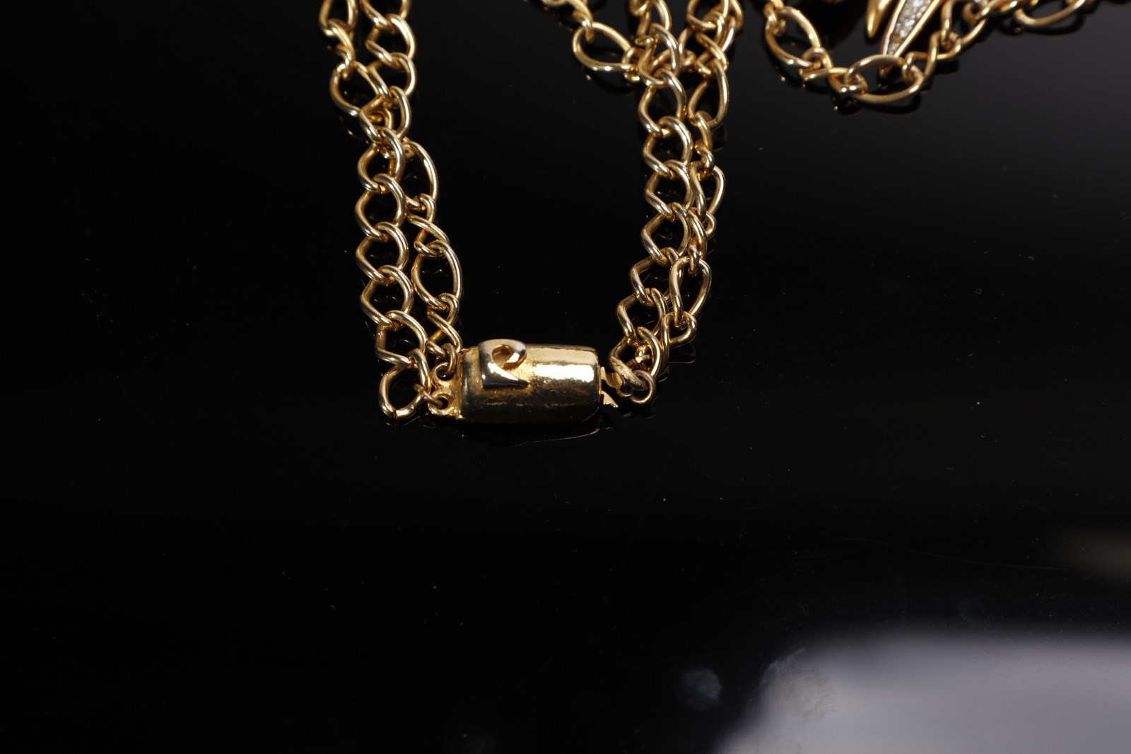 CARDIN PIERRE - Girocollo a duplice filo, catena dorata e fiocco in strass.