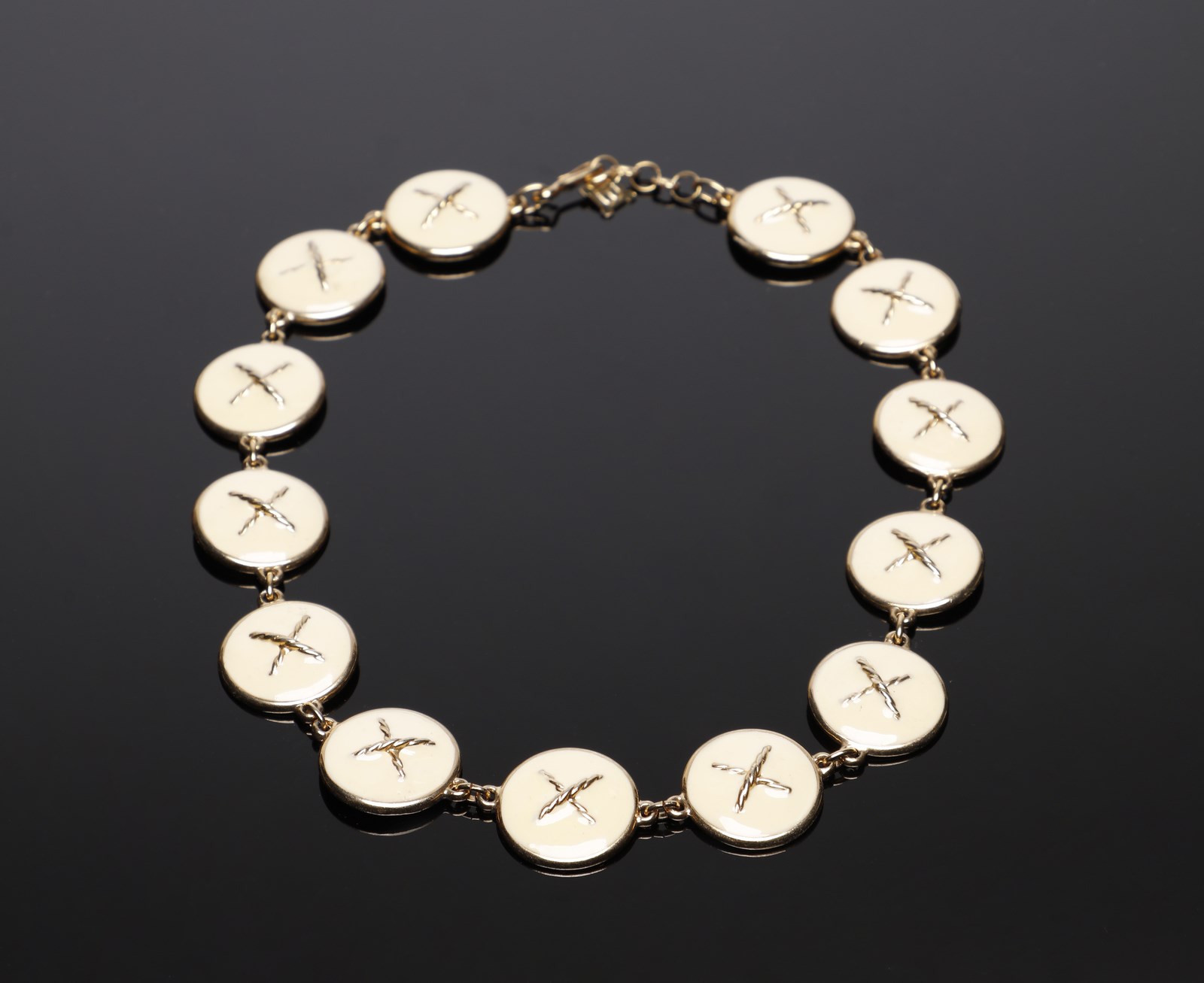 BIAGIOTTI LAURA Collier a nodi nei colori del bianco avorio e oro. -. .