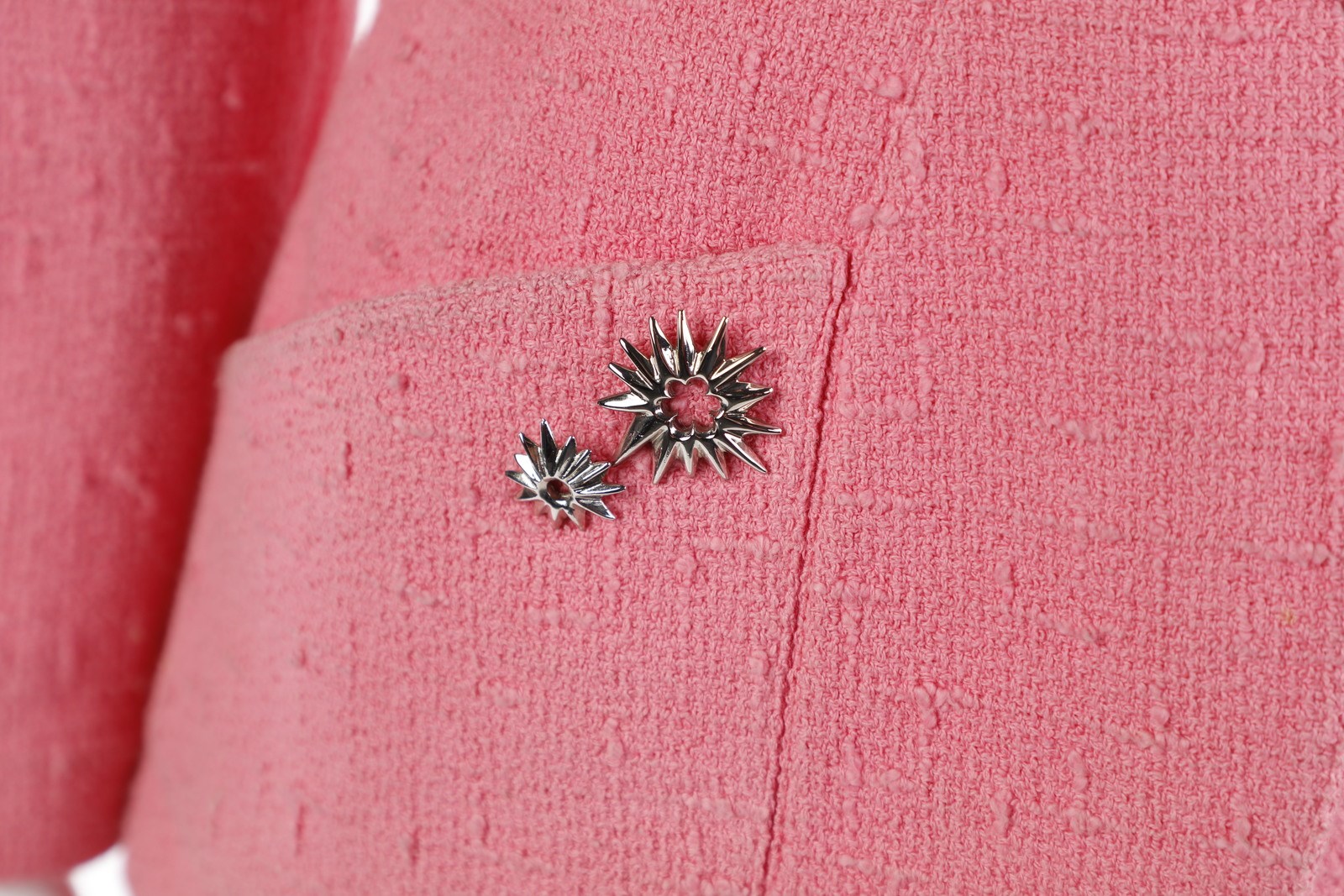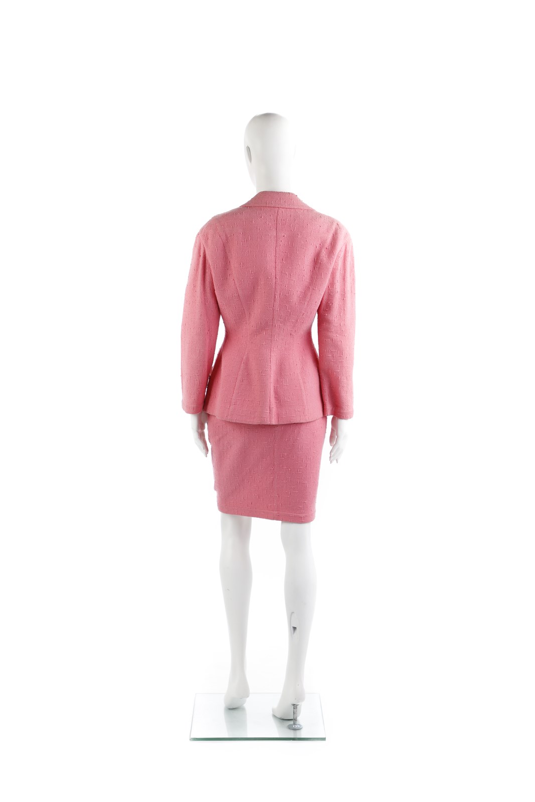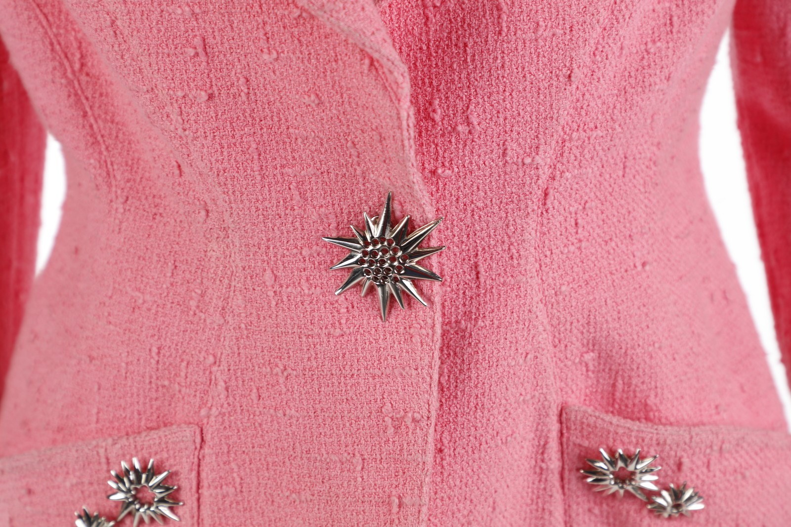 MUGLER THIERRY - Completo composto da giacca e gonna in cotone rosa, bottoni gioiello. Taglia 38.IT,.