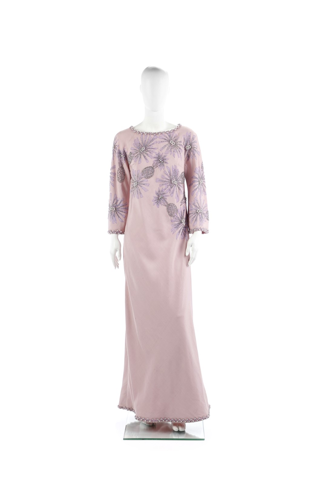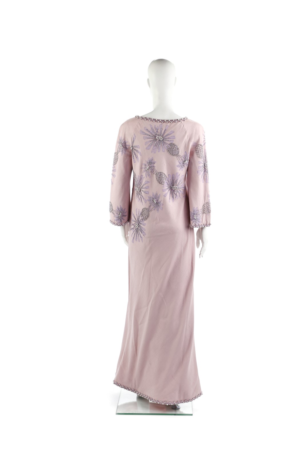 AUTORE NON IDENTIFICATO - Abito anni 60 dipinto a mano con fiori e ricamato. Pezzo unico.Made in taly. .