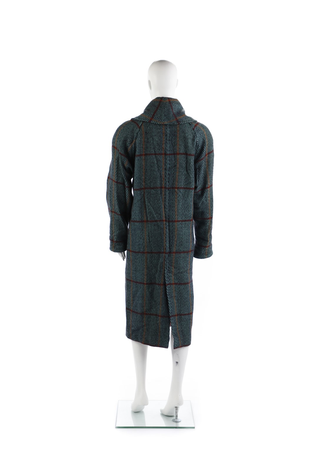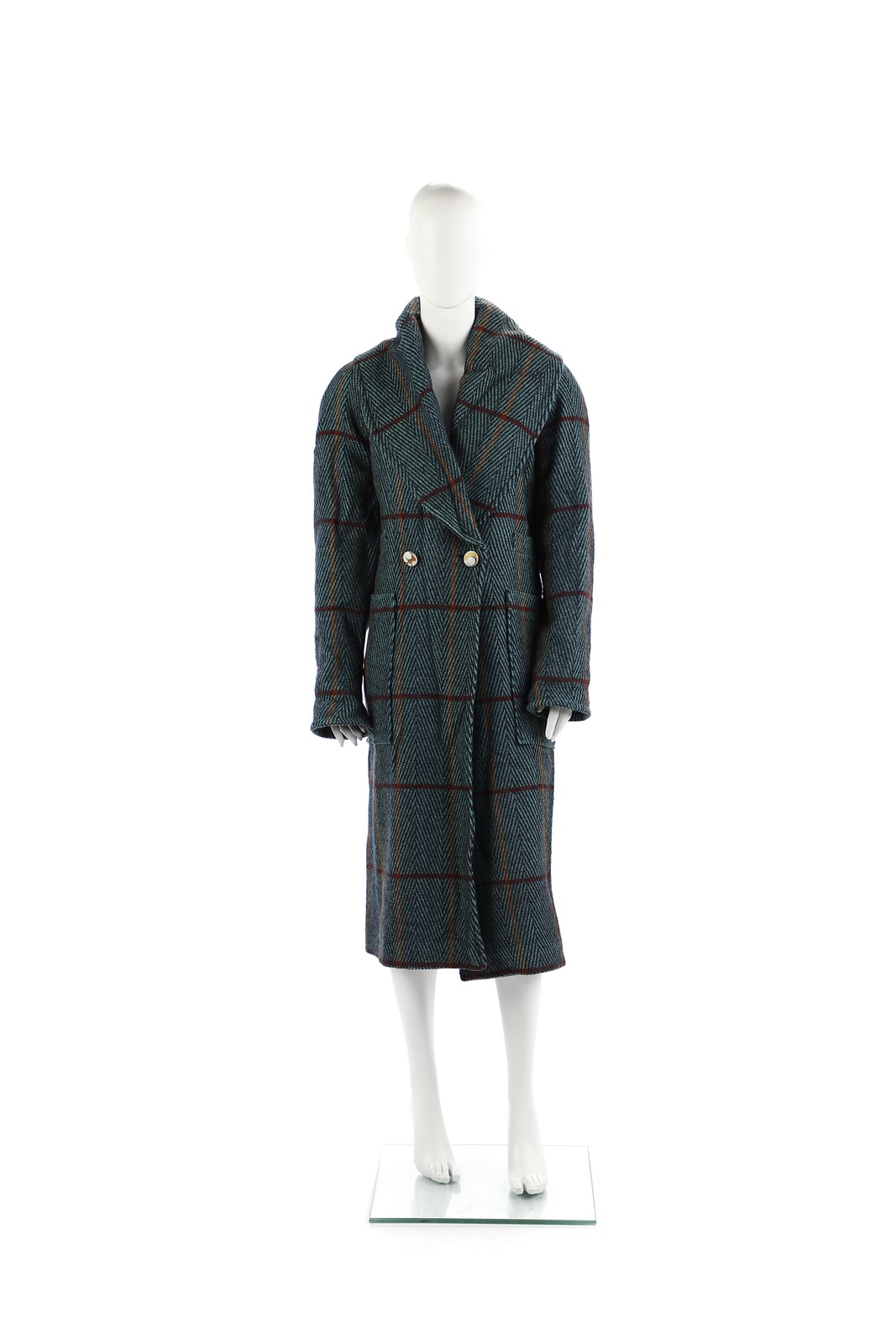 RUGGERI CINZIA - Cappotto verde disegno tartan. Bottoni dipinti a mano. Certificato di provenienza Franco Jacassi.