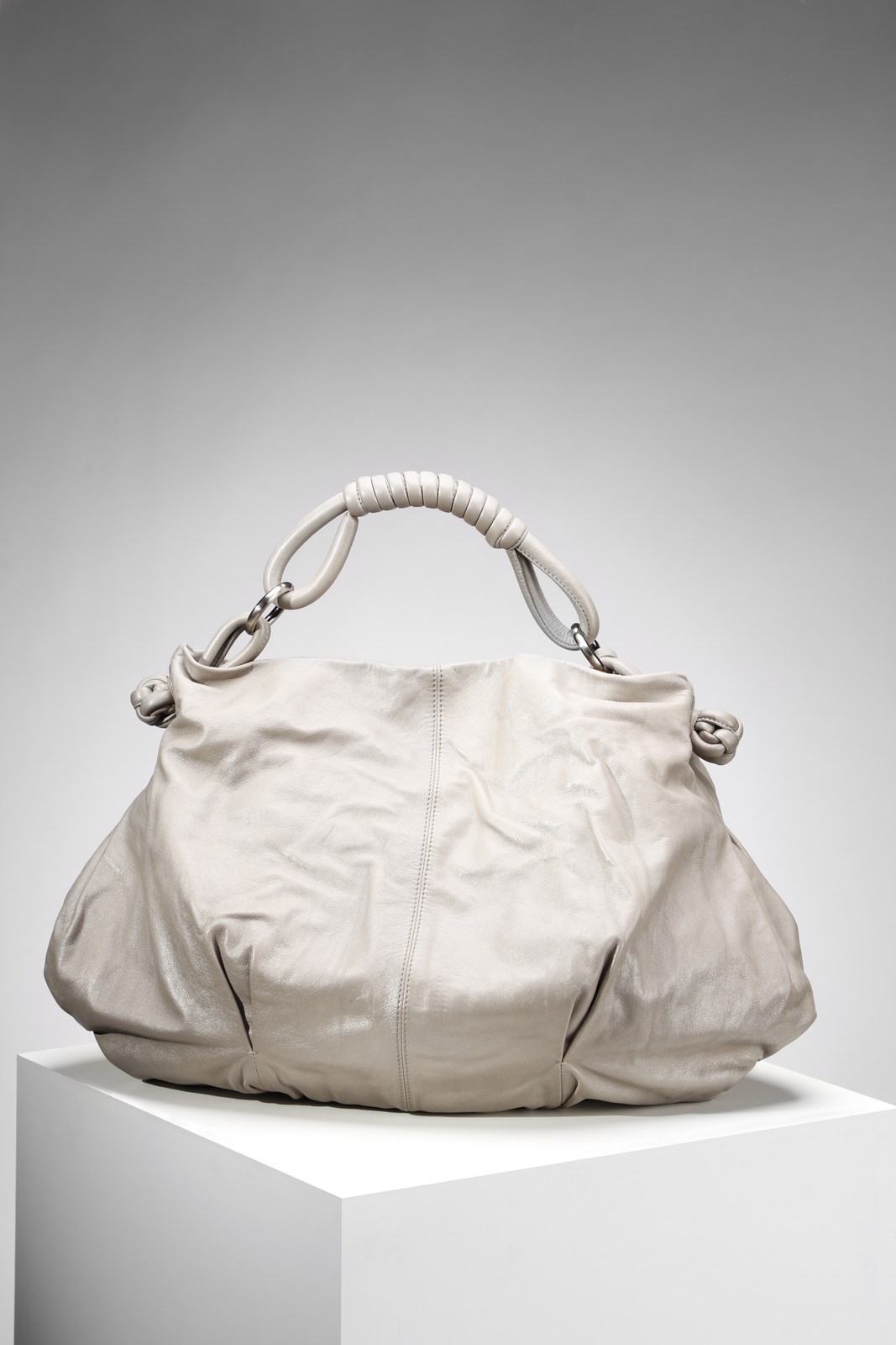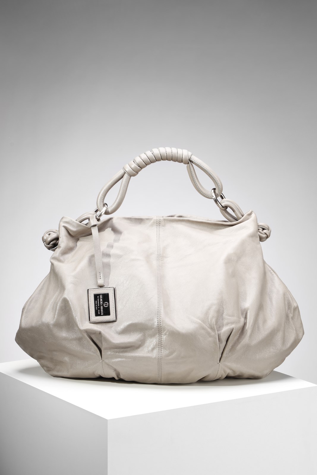 GIORGIO ARMANI (n. 1934) - Borsa a mano in pelle color grigio chiaro.