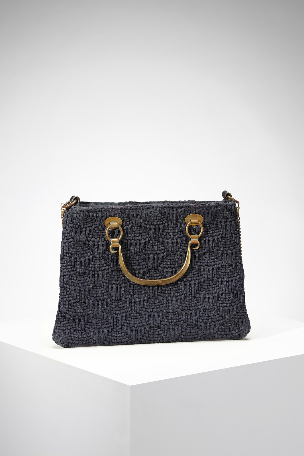 DI CAMERINO ROBERTA (1920 - 2010) - Borsa a mano in cotone blu e metallo.