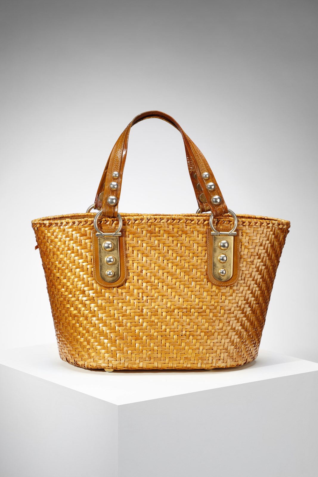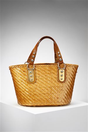 RODO Borsa in raffia e pelle color cuoio. Raffia. Cm 39,00 x 23,00 x 10,00. Difetti. Galvanica oro.