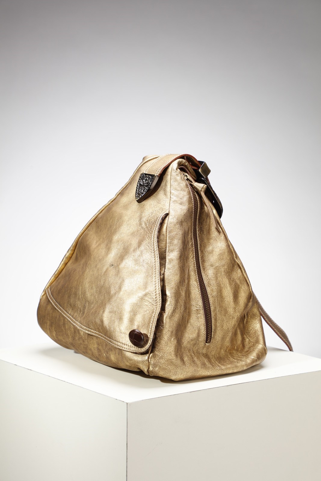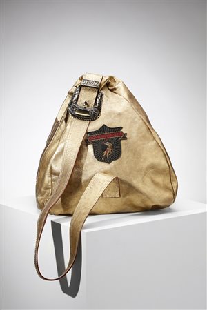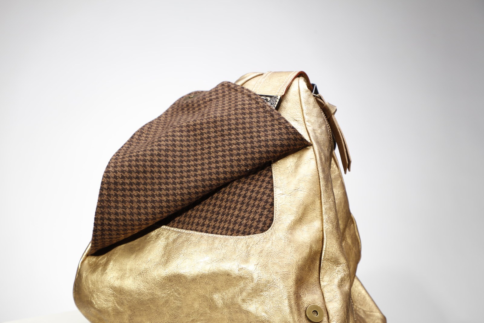 CLONEUNDERMYSKIN Borsa a spalla Clone Italia, in tessuto dorato con decorazione in metallo. Pelle. .