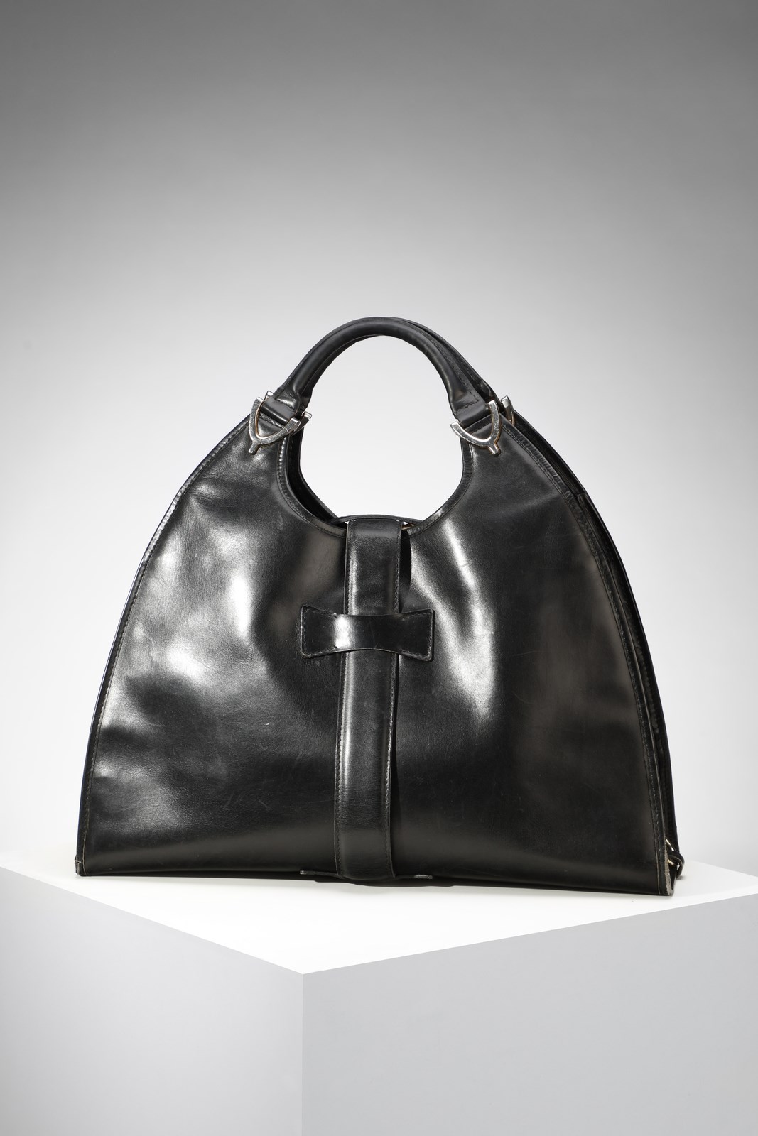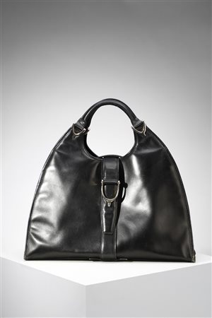 GUCCI - Borsa a mano in pelle nera, chiusura con fibbia.