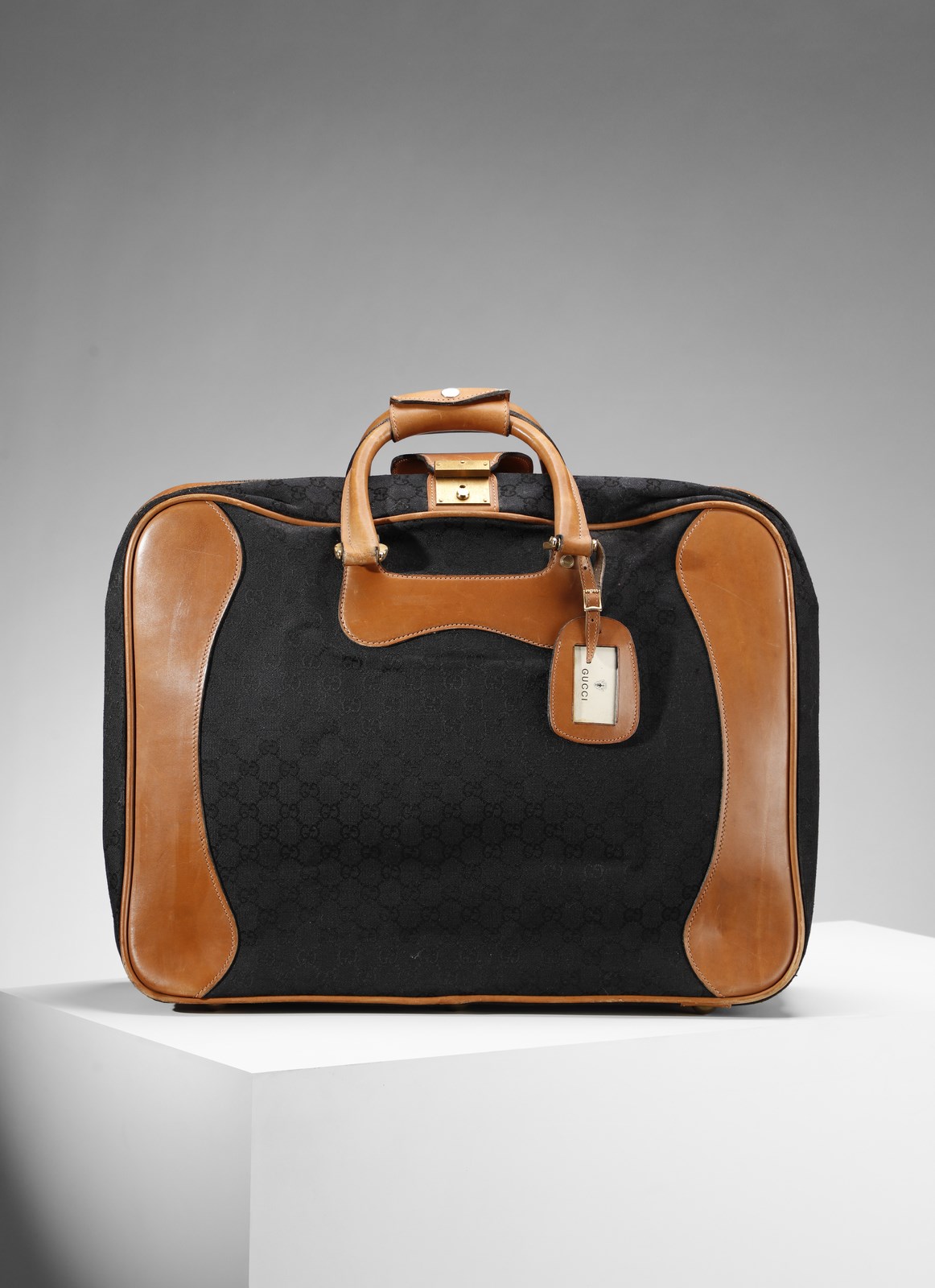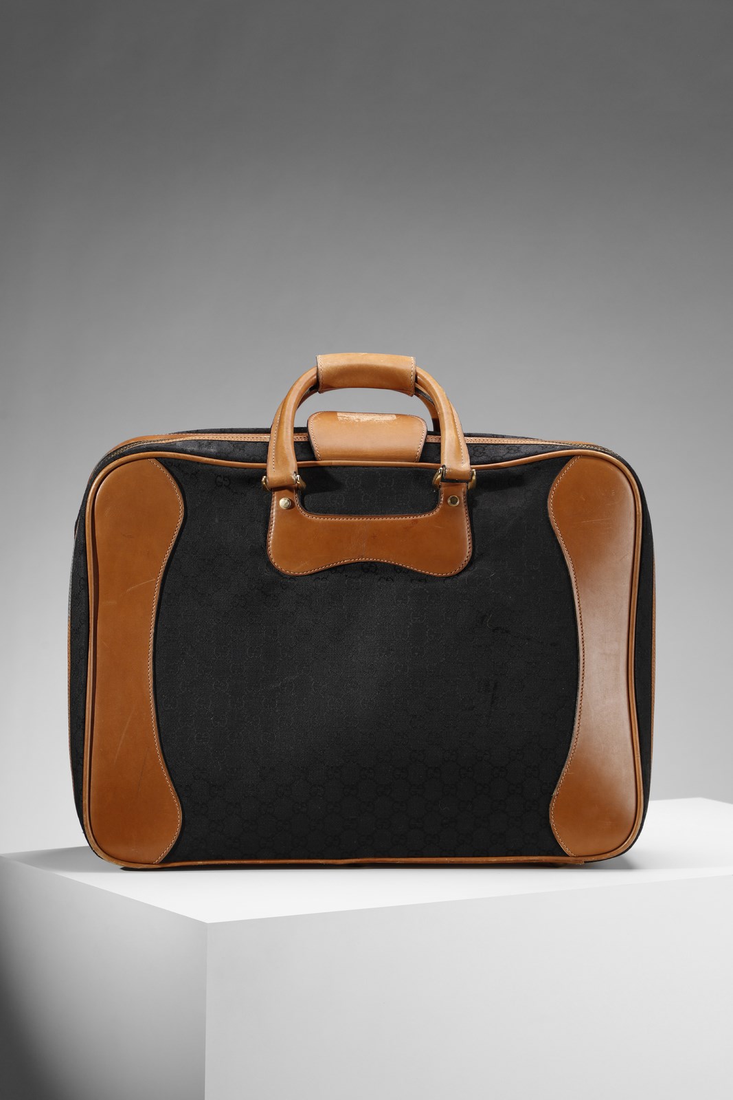 GUCCI Valigia monogram canvas e cuoio anni '70. -. .