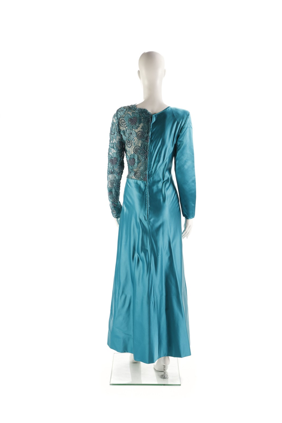 AUTORE NON IDENTIFICATO Abito sartoriale lungo, ricamato da un lato, a maniche lunghe. Premiere Montenapoleone, Milano. Seta. . Provenienza: collezione privata, Monza.