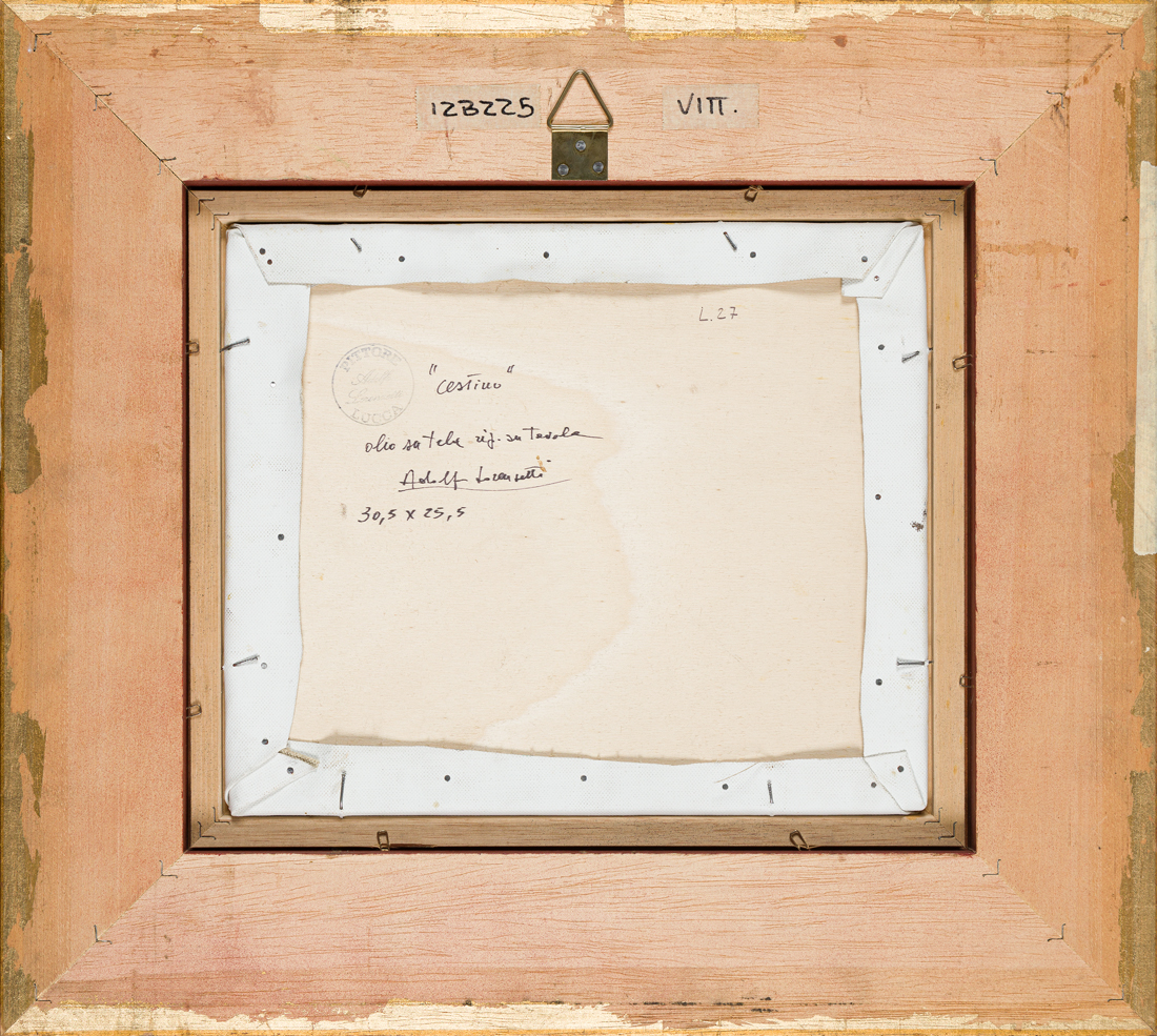Firma, titolo, tecnica, misure e timbro dell'Artista al retro