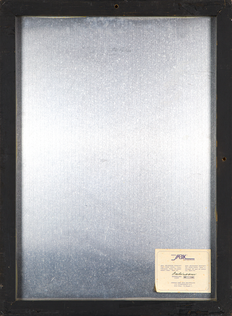 Etichetta delle Edizioni Jabik (MI) al retro con firma e numerazione (Esemplare 144/500) al retro