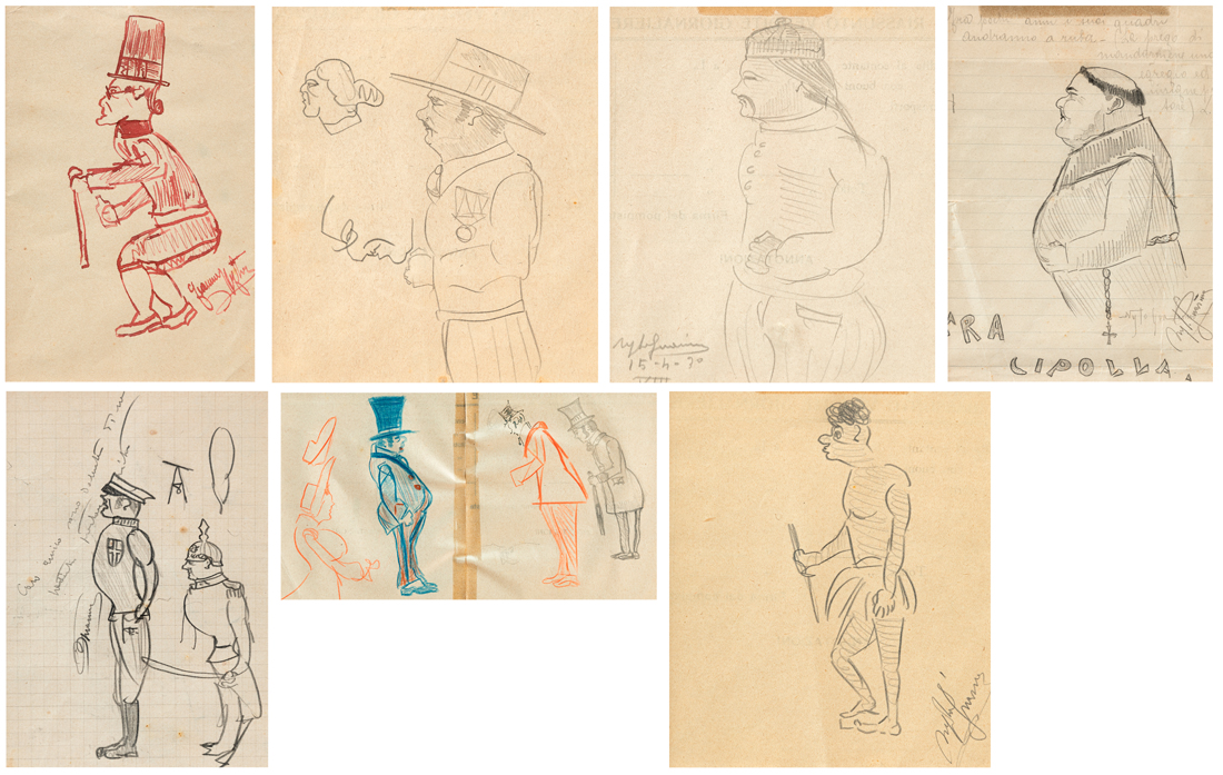 3 matite su carta, cm 14,5x12,5, di cui 2 firmate