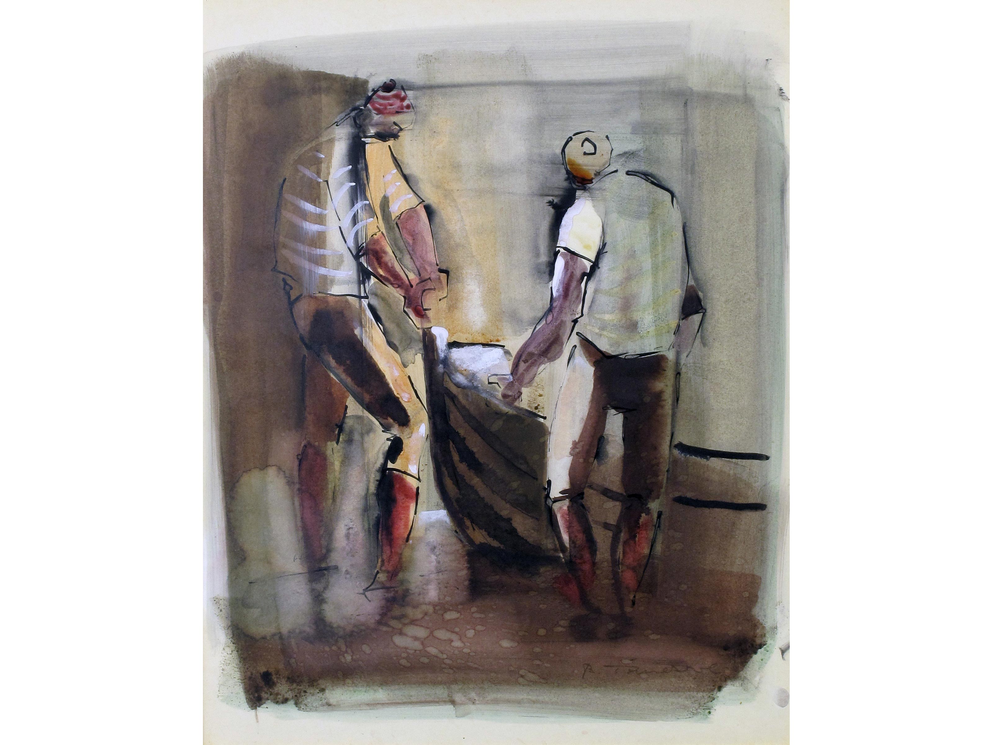 Lot 57 | Benito Tomezzoli (Verona 1923) Pescatori Tecnica mista su carta Firmato...