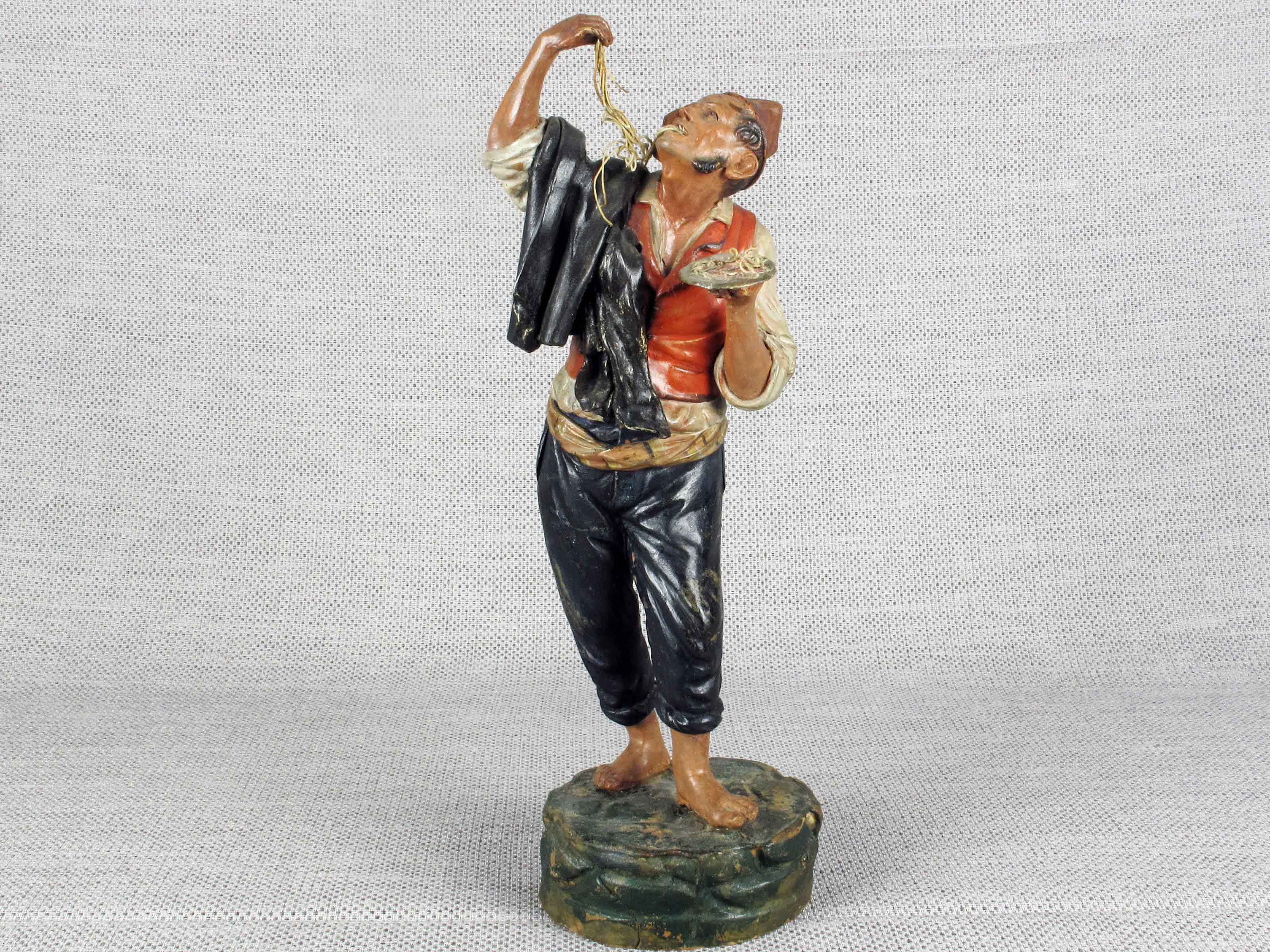 XIX secolo Mangiatore di spaghetti Terracotta policroma Mancanza sul retro come da fotografia Altezza 34 cm