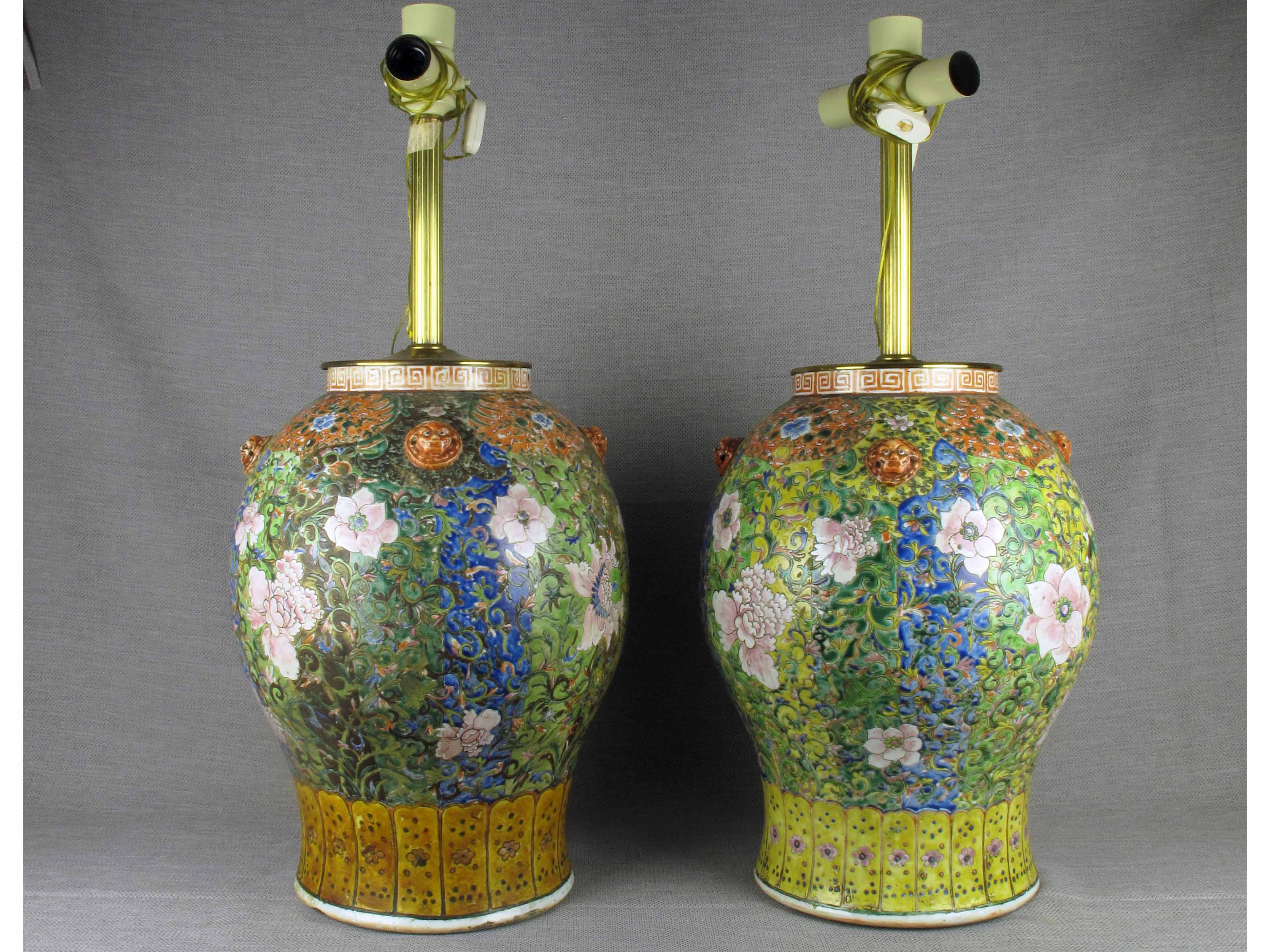 Cina (inizio XIX secolo) Coppia di giare Canton in porcellana Altezza 52 cm Predisposizione per l'illuminazione